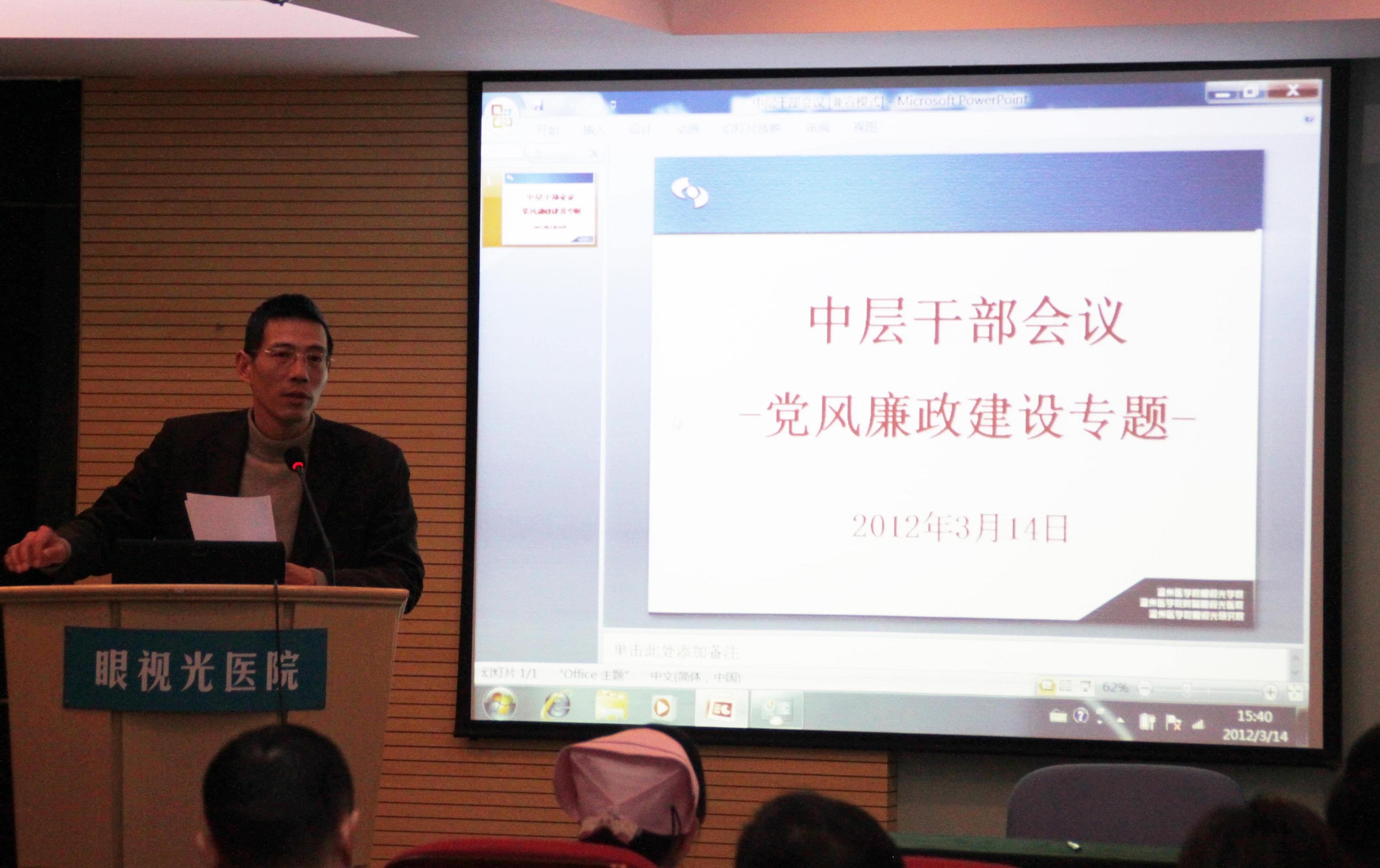 3月14日,我院召開中層干部黨風廉政專題會議。由汪軍洪書記傳達2012年衛(wèi)生部、監(jiān)察部、衛(wèi)生廳及學校重要文件,并對我院“六五”普法工作進行部署,王勤美院長、沈麗君副院長出席會議,同時通過視頻會議系統(tǒng)與杭州院區(qū)連線。