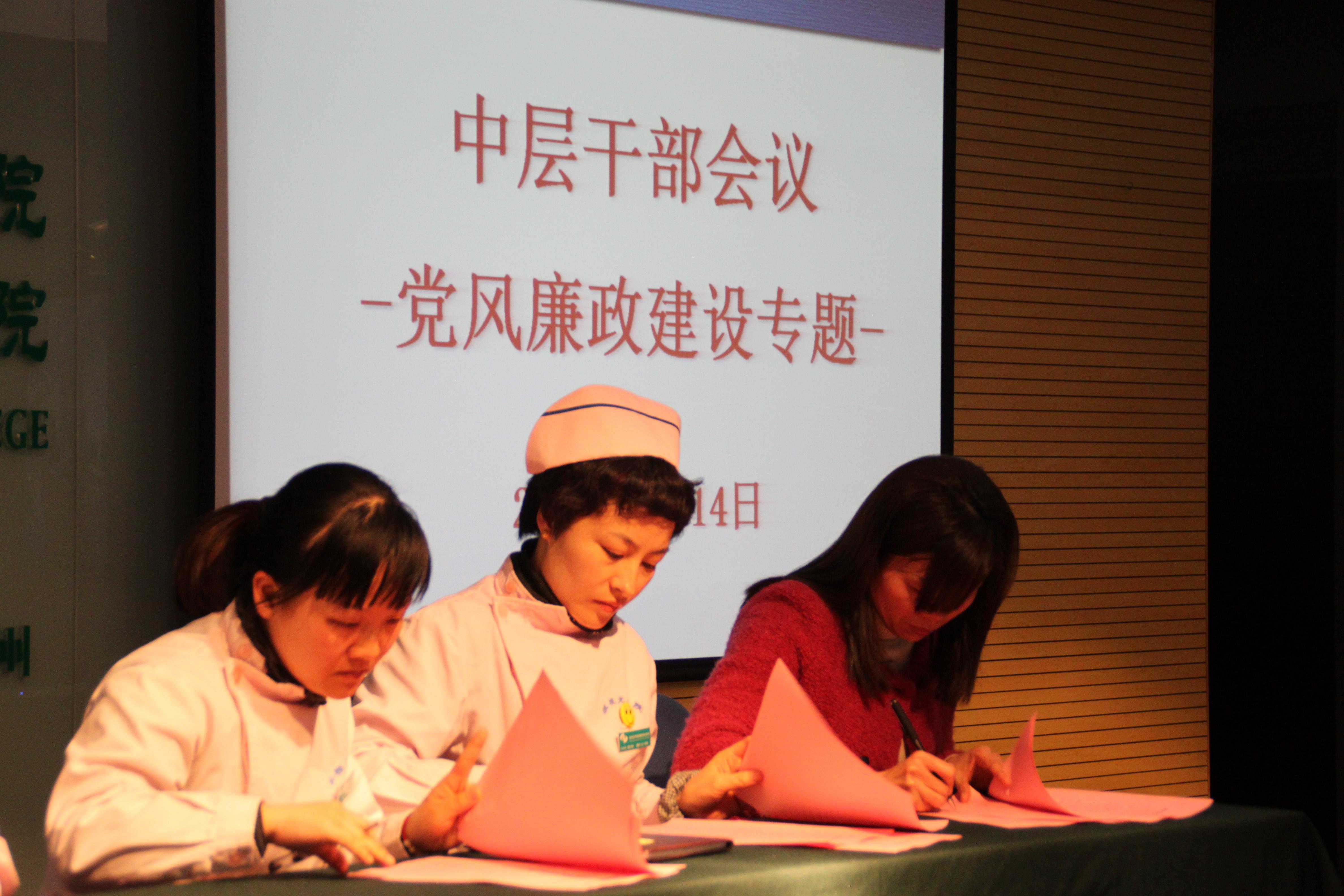 為貫徹落實黨風廉政建設(shè)責任制的有關(guān)規(guī)定,進一步加強我院黨風廉政建設(shè)及我院的醫(yī)德醫(yī)風建設(shè),不斷強化各級領(lǐng)導干部的廉政責任意識,保證上級黨委和學院、醫(yī)院黨總支關(guān)于黨風廉政建設(shè)的各項要求落到實處,努力建設(shè)健康和諧的醫(yī)患關(guān)系,樹立醫(yī)院良好的社會形象,學院、醫(yī)院與全體中層干部簽訂了《溫州醫(yī)學院眼視光學院、醫(yī)院黨風廉政建設(shè)和糾風工作責任書》及《溫州醫(yī)學院附屬眼視光醫(yī)院創(chuàng)建無紅包科室承諾書》。