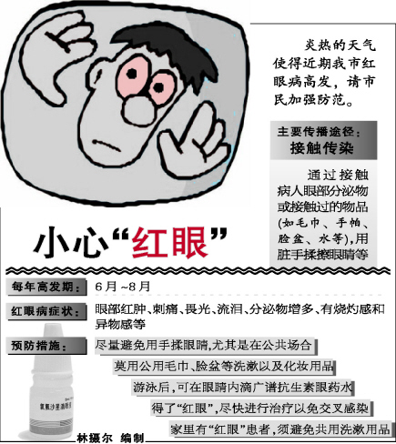 ? 炎熱的天氣使得近期我市紅眼病高發(fā),請市民加強防范。