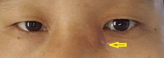 近日一內(nèi)眥部紅腫患者來(lái)門(mén)診就診,自訴因左眼內(nèi)政部腫物在外院手術(shù)。術(shù)后出現(xiàn)內(nèi)眥的紅、腫、痛,伴皮膚瘺口形成(見(jiàn)黃色