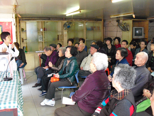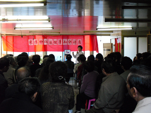 ??????? 紅十月,健康教育學(xué)校二進社區(qū)乘涼橋社區(qū),我院李軍花醫(yī)生為這里的老黨員及退休職工,上了一堂別開生面的眼保健講座。