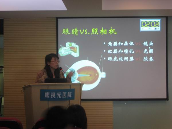 講座中,孫醫(yī)生做了一個(gè)形象的比喻,將我們的眼睛比作一部照相機(jī),而我們的眼底-視網(wǎng)膜相當(dāng)于照相機(jī)的膠卷,如果膠卷壞了,那么再高級(jí)的相機(jī)也拍不出好看的相片;同理,如果人的眼底出現(xiàn)問題,那么將無法欣賞到美麗的風(fēng)景。孫醫(yī)生將幾種常見的眼底疾病,如老年性黃斑變性、視網(wǎng)膜血管阻塞、糖尿病視網(wǎng)膜病變等,從發(fā)病機(jī)理、臨床表現(xiàn)及治療新進(jìn)展等方面一一向在座的中老年人闡述,并就人們比較關(guān)注的飲食及預(yù)防方面進(jìn)行詳細(xì)介紹。