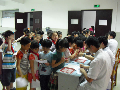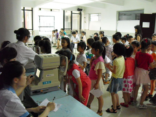 今年的6月6日,是全國第十七個愛眼日,該節(jié)日的設(shè)立旨在加強全民愛眼意識,提高民族健康素質(zhì),動員社會各界力量,共同關(guān)心人們的眼睛。當(dāng)然,凡事都應(yīng)該從基礎(chǔ)做起,從娃娃抓起。據(jù)國家教育部、衛(wèi)生部最新調(diào)查表明:我國小學(xué)生近視率超過25%,初中生近視率達(dá)到70%,高中生近視率達(dá)到85%,每年以8%的速度增長,居世界第一位。為此,我們健康教育學(xué)校與我院視光診療中心醫(yī)護(hù)人員將本次愛眼日活動鎖定于溫州市廣場路小學(xué)。