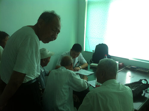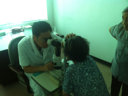 與此同時,在眼視光學(xué)院團(tuán)委學(xué)生會暑期社會實踐隊的協(xié)作下,我們還進(jìn)行了一系列義診項目,包括血壓測量、眼底鏡裂隙燈檢查、視力檢測、淚道沖洗等。在黃小明醫(yī)師和陳峰醫(yī)師的細(xì)心檢查下,我們發(fā)現(xiàn)該批義診對象中出現(xiàn)較多的為白內(nèi)障和淚道堵塞患者。面對村民的咨詢,兩位醫(yī)師給予了耐心講解,并叮囑他們要采取相應(yīng)措施給予診治。