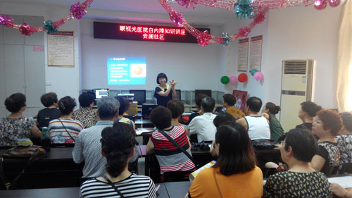 為使市民了解有關(guān)醫(yī)學科普知識,為關(guān)心社區(qū)居民的健康、提高居民的生活質(zhì)量,溫州醫(yī)科大學附屬眼視光醫(yī)院健康教育學校和安瀾社區(qū)于7月17日上午9點半,在社區(qū)教育中心舉辦白內(nèi)障防治科普知識講座,特邀白內(nèi)障專科中心州謝荷醫(yī)師為大家講授,謝荷醫(yī)師為大家仔細地講解了“認識白內(nèi)障、白內(nèi)障的分類、白內(nèi)障的危險因素、白內(nèi)障的癥狀體征”和“白內(nèi)障的治療、白內(nèi)障手術(shù)的主要目的、白內(nèi)障幾個常見的問題”,社區(qū)居民聚精會神地聽了課。因白內(nèi)障是我國和全球的第一致盲眼病,也是中老年人的一種常見病、多發(fā)病,是危害中老年人健康的一種嚴重疾病,但白內(nèi)障患治療最佳的方法就是通過手術(shù)治療,效果顯著。大家聽了謝荷醫(yī)師圖文并茂的講課,都非常高興,結(jié)束時大家報以熱烈的掌聲。