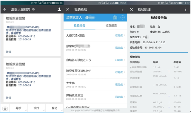 患者做完檢驗(yàn)或檢查出結(jié)果后,平臺會推送報(bào)告提醒或點(diǎn)擊“診療”→“檢驗(yàn)檢查”可以通過平臺查看報(bào)告結(jié)果。