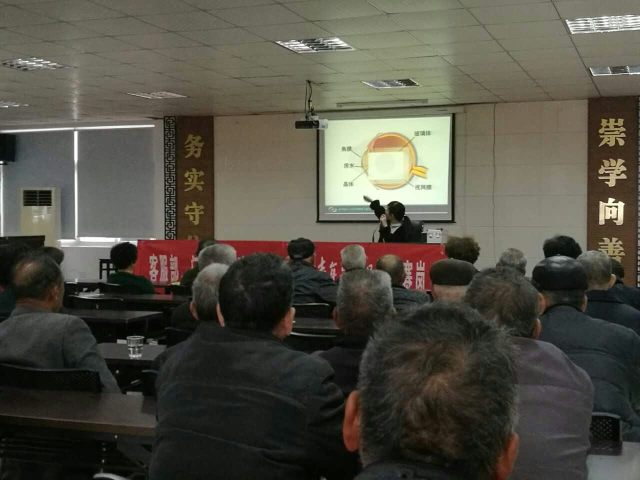 講座中,葉醫(yī)師介紹了老年人常見的疾病,重點介紹了白內(nèi)障相關(guān)知識,并解答了現(xiàn)場老人們心中的疑慮。講座結(jié)束后還給在場的老人們進行了白內(nèi)障的篩查,結(jié)果顯示有10余位患有白內(nèi)障,8位淚道阻塞,1位淚囊炎,1位角膜炎。?????