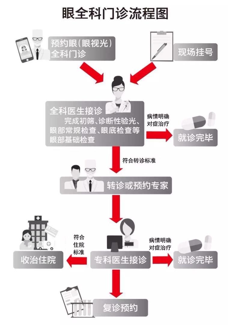 如果您掛不到專家號,您可以預(yù)約專家團隊門診!團隊醫(yī)師如發(fā)現(xiàn)您的病情需要專家確診,醫(yī)師會直接幫您預(yù)約到專家號(如果專家當(dāng)日有出診,甚至可以當(dāng)日就轉(zhuǎn)給專家完成就診),省事省心又省力! 如果您無法確定自己的病情,也沒關(guān)系,眼視光醫(yī)院特設(shè)有全科門診對患者進行初診分類和轉(zhuǎn)診,也可直接進行健康咨詢。若為普通眼疾或視光疾病患者則由全科醫(yī)師直接給予診治,其他眼科疾病將由全科醫(yī)師通過轉(zhuǎn)診至相應(yīng)科室或名醫(yī)專家團隊接受進一步的治療。