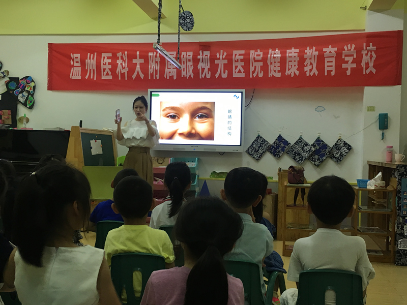 近年來,電子產(chǎn)品的應用呈現(xiàn)出人口眾多、低齡化趨勢兩個特點。一些幼兒園和家庭普遍加強了對孩子的文化教育,使用電子產(chǎn)品難免給幼兒帶來視覺負擔,眼睛調(diào)節(jié)緊張,很容易表現(xiàn)為視力異常。為提高幼兒認識,我院健康教育學校走進溫州市機關(guān)第二幼兒園,開展普及護眼相關(guān)知識的小課堂。