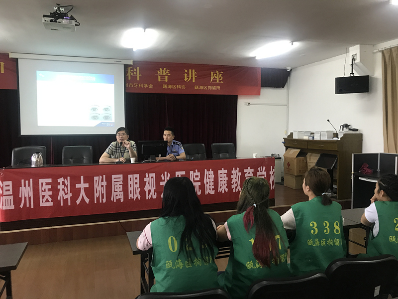 5月31日,我院健康教育學(xué)校受甌海拘留所的邀請(qǐng),為該所的108位拘留人員和工作人員開(kāi)展眼科科普專題講座。本次講座由眼病相關(guān)專科涂云海副主任醫(yī)師授課。