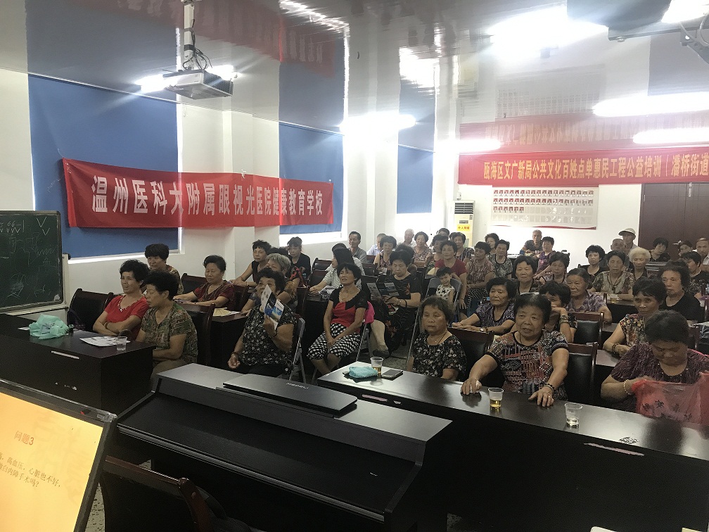 白內(nèi)障是當(dāng)前老年人的主要致盲眼病之一,在過去稱為“老年性白內(nèi)障”就是主要發(fā)生在中老年人群。但是現(xiàn)在越來越多的年輕人也患上了白內(nèi)障。也是眼科最常見的多發(fā)疾病,那白內(nèi)障該怎么預(yù)防和治療呢?2018年7月26日下午2時(shí)由我院健康教育學(xué)校白內(nèi)障專科徐明副主任醫(yī)師為馬橋社區(qū)的社區(qū)居民開展白內(nèi)障專題講座。