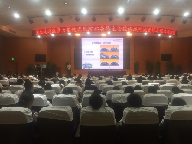 6月11日晚,我院健康教育學(xué)校、臨床檢查中心巾幗文明崗崗長(zhǎng)、檢驗(yàn)病理中心主任鄭美琴同志為溫州市東甌中學(xué)初中部的400位初中生帶來(lái)《愛(ài)眼、護(hù)眼》講座。