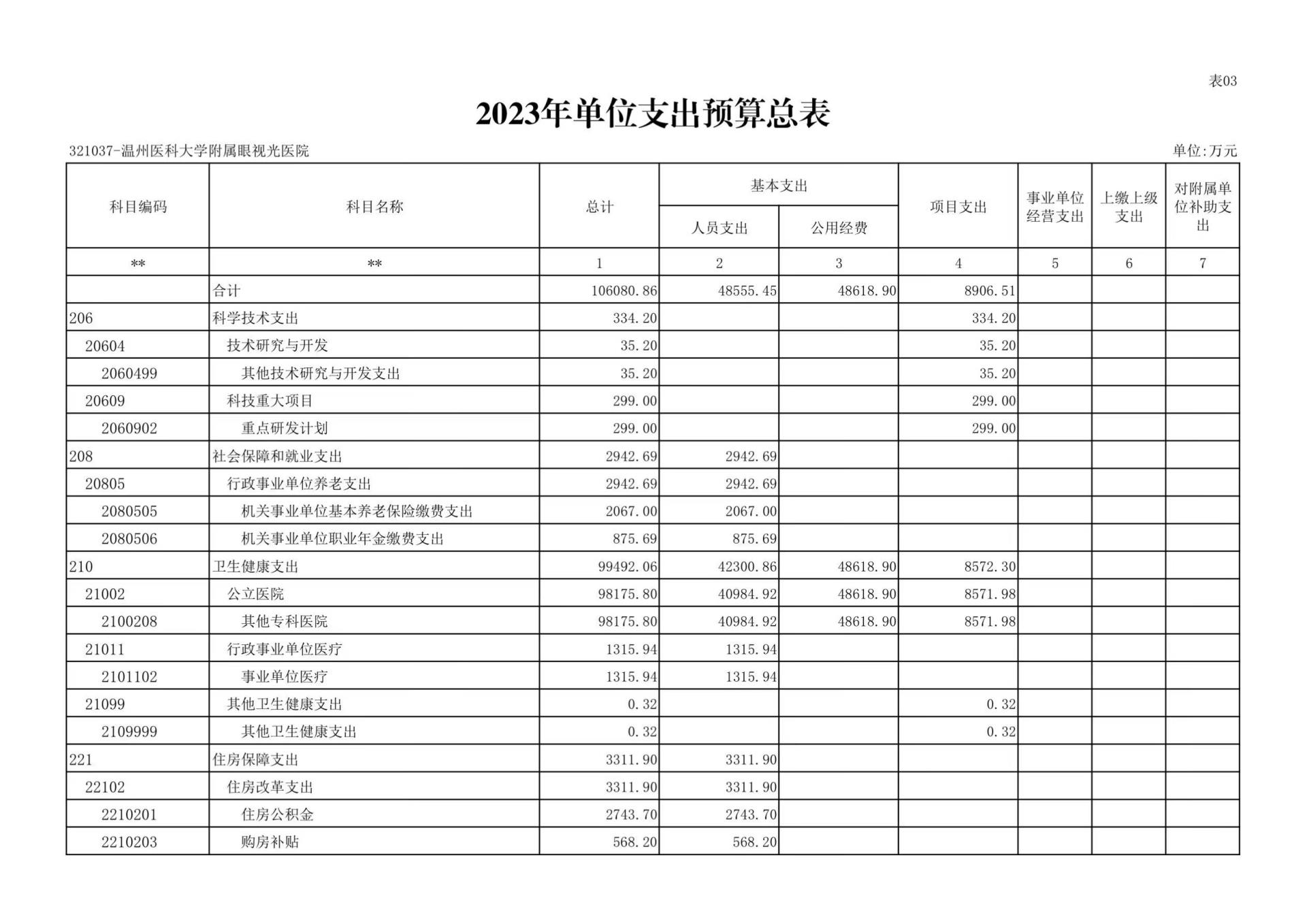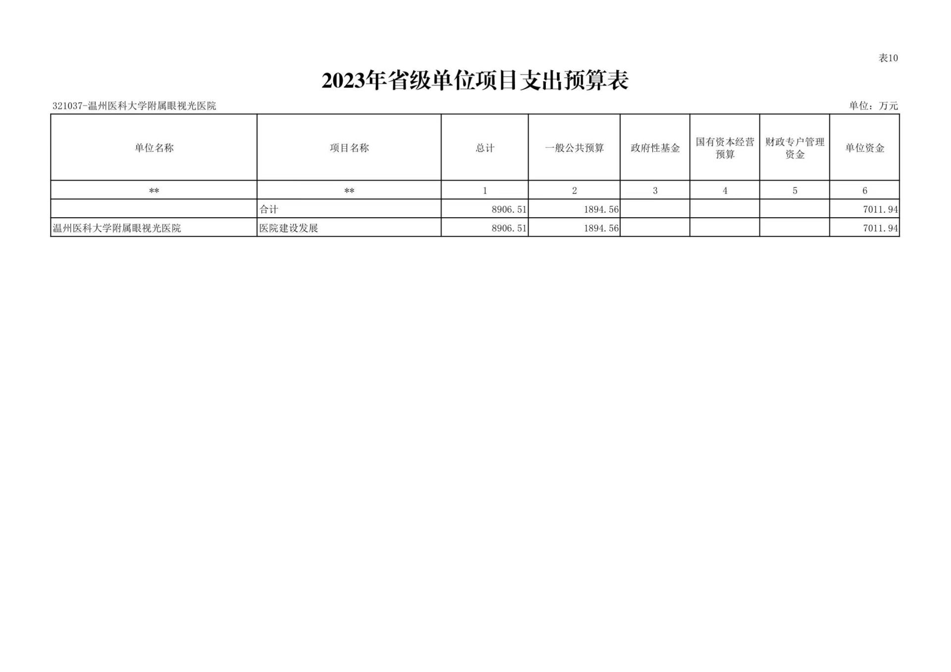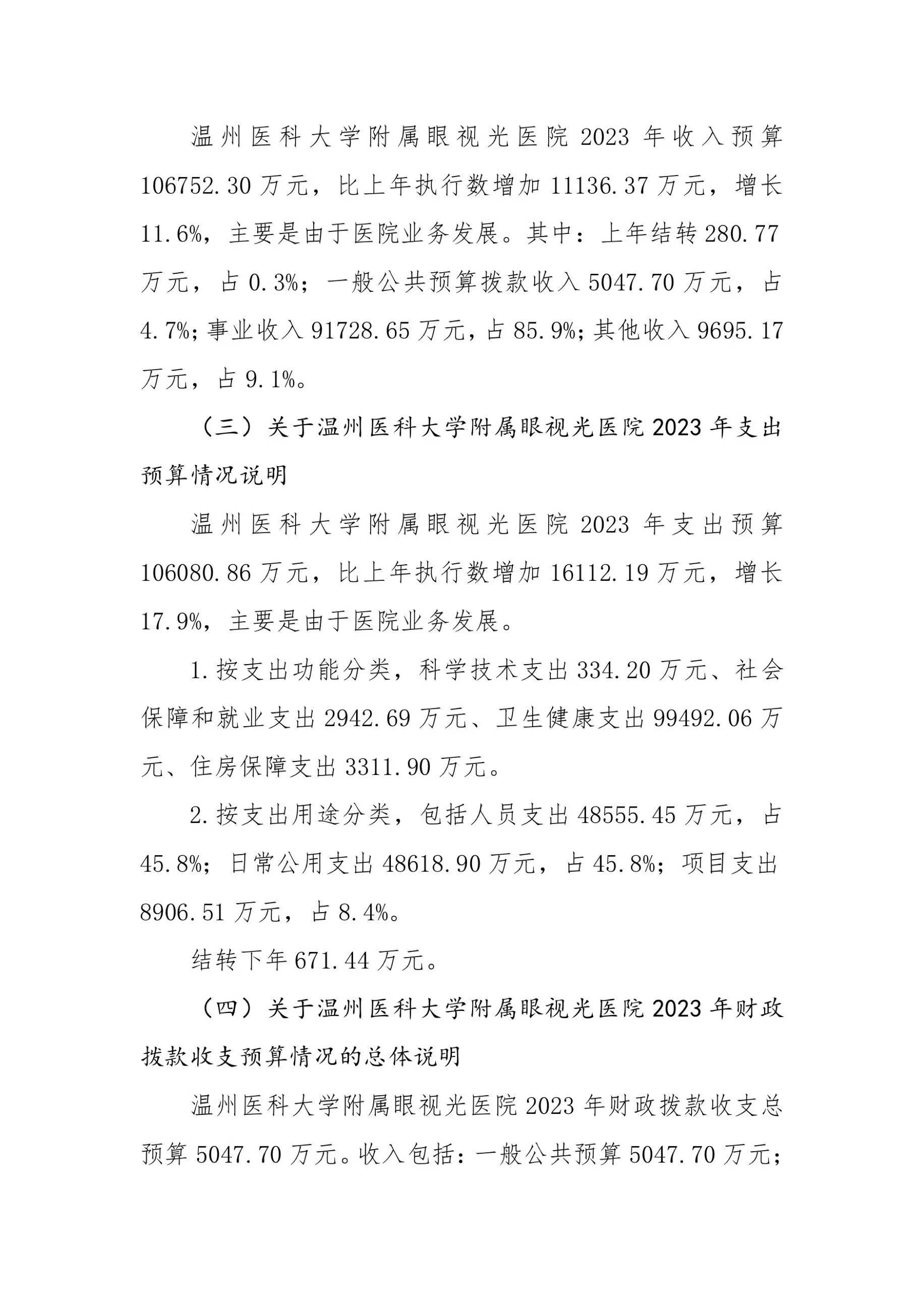 溫州醫(yī)科大學附屬眼視光醫(yī)院2023年單位預算公開