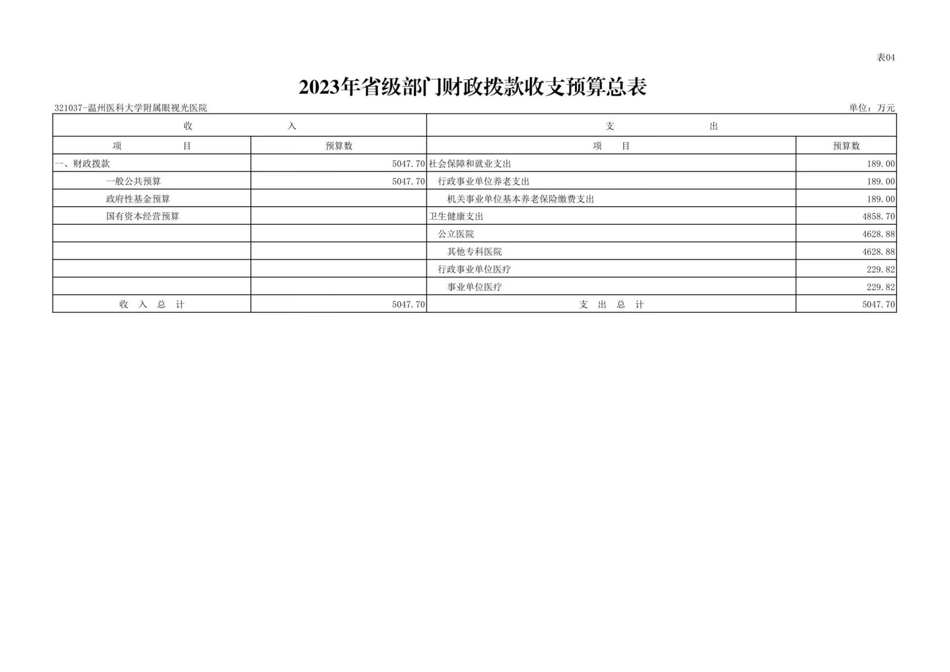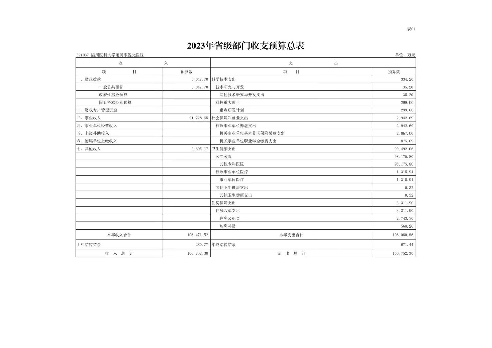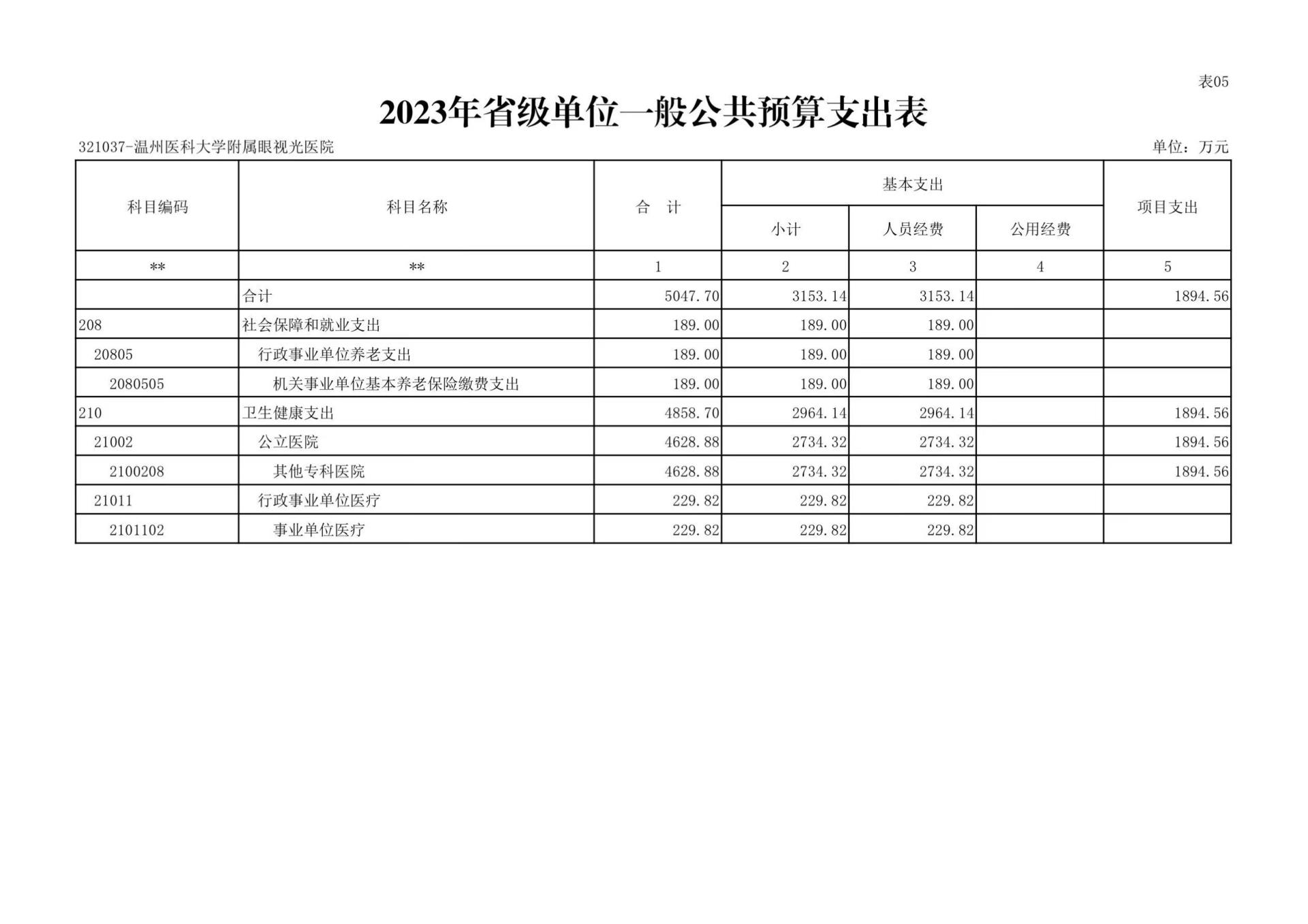 溫州醫(yī)科大學附屬眼視光醫(yī)院2023年單位預算公開