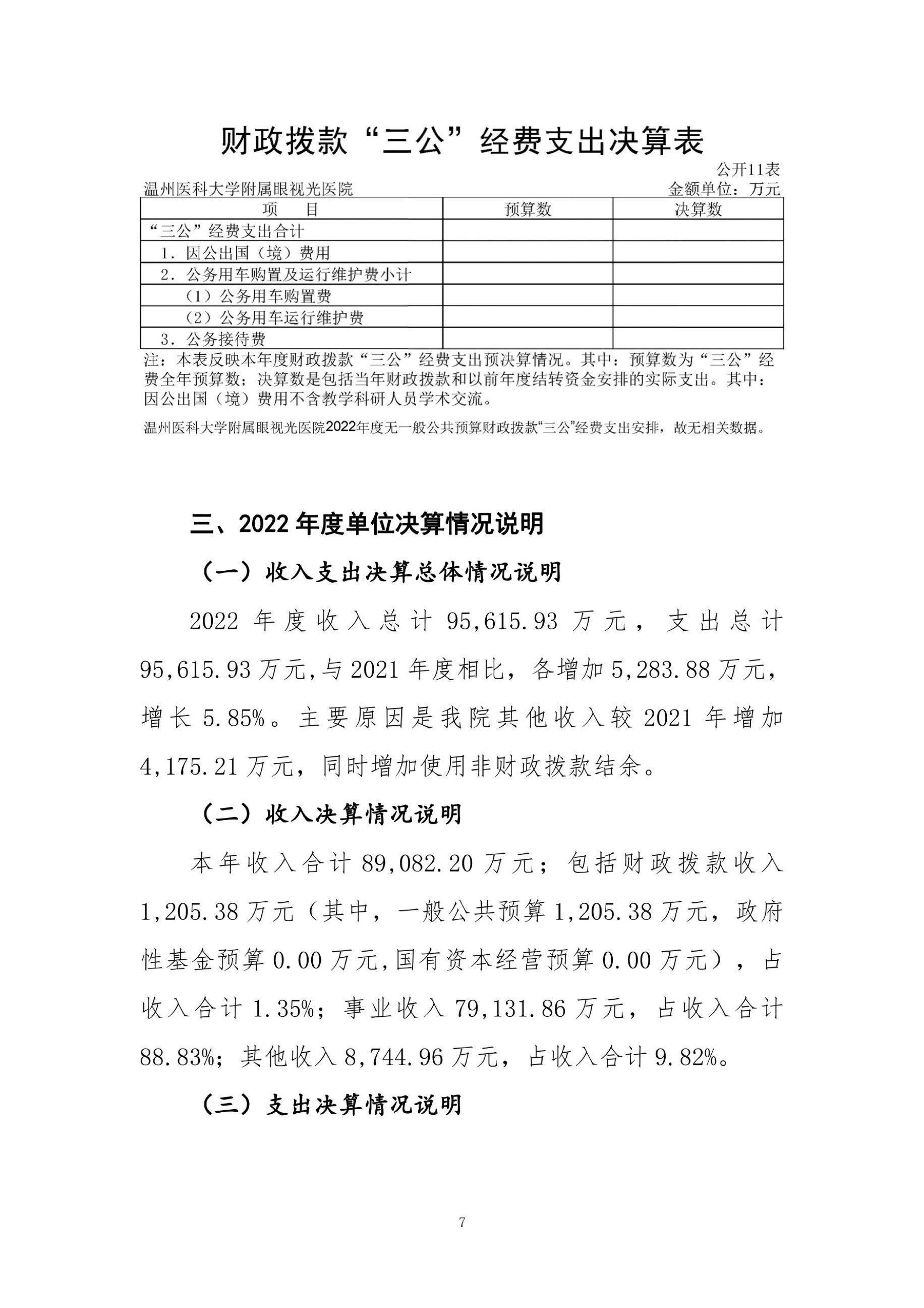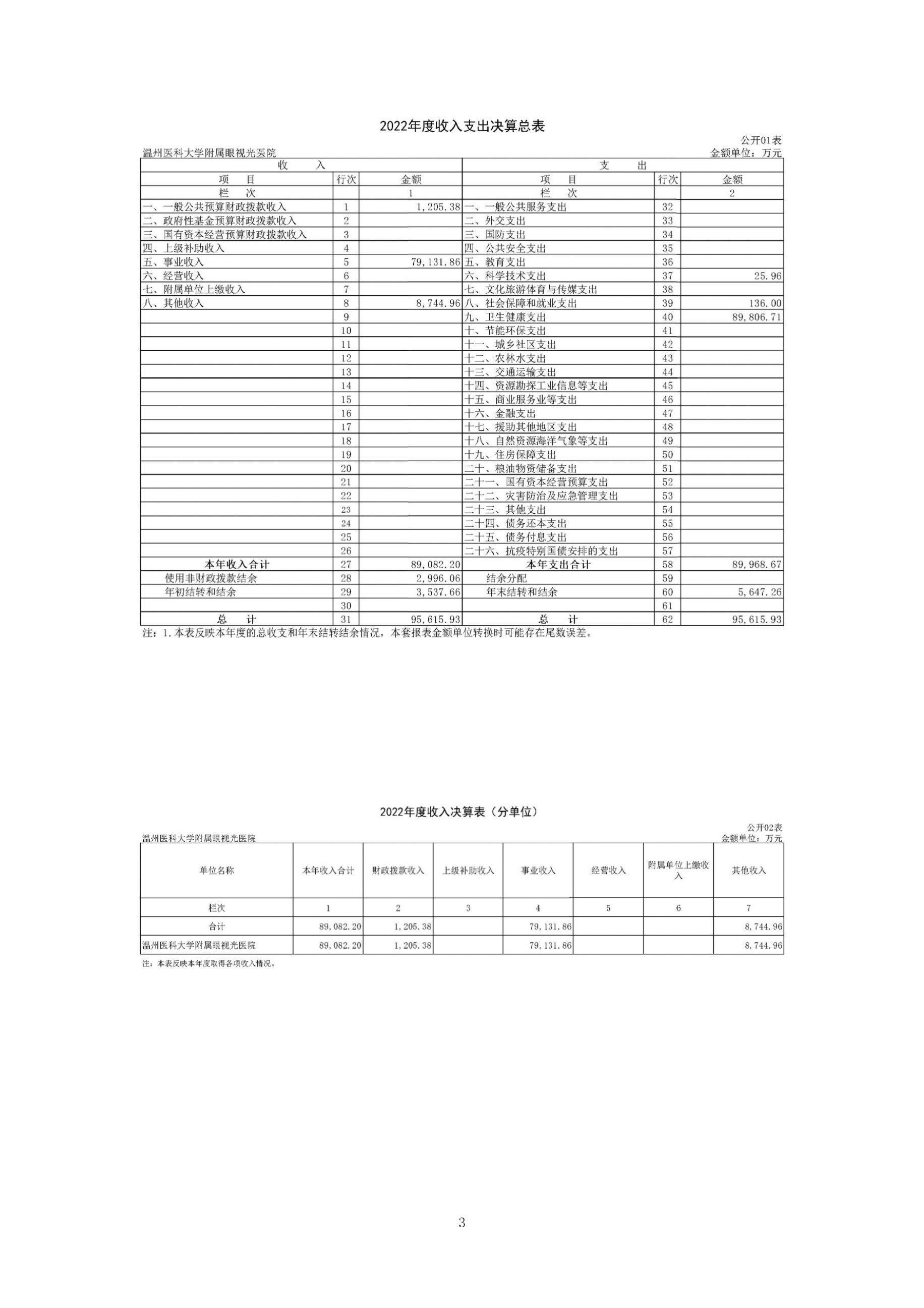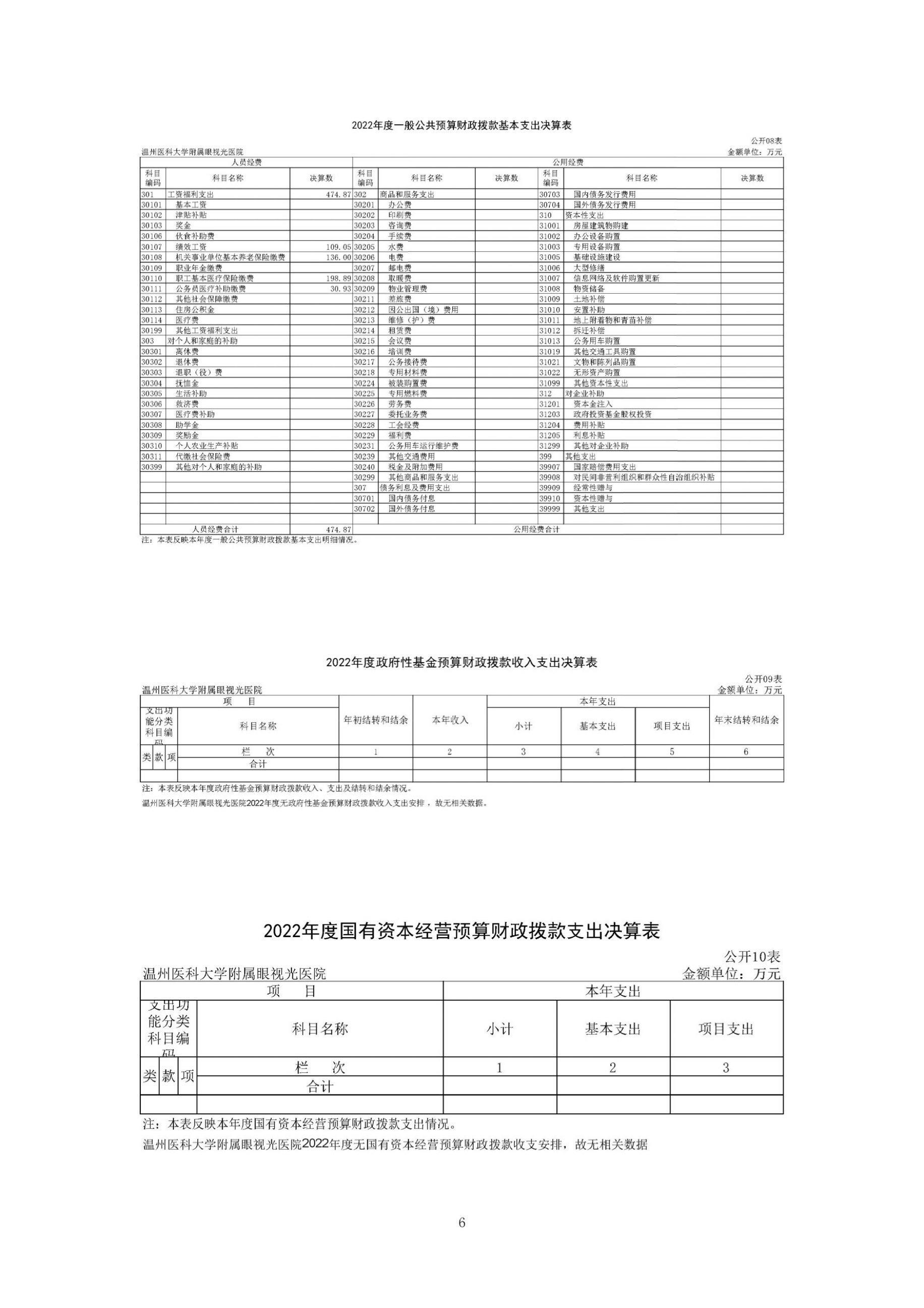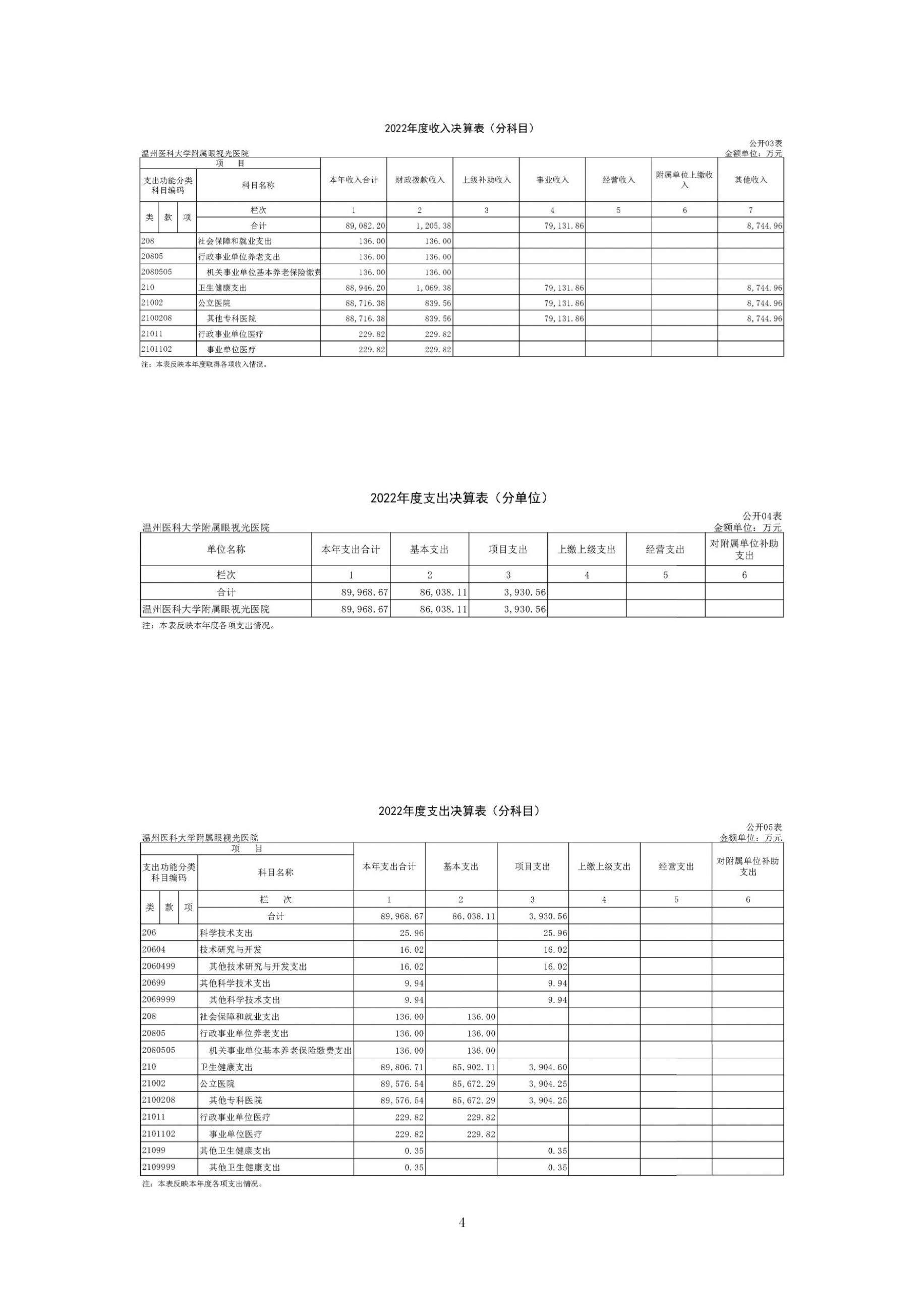 溫州醫(yī)科大學(xué)附屬眼視光醫(yī)院2022年度單位決算公開