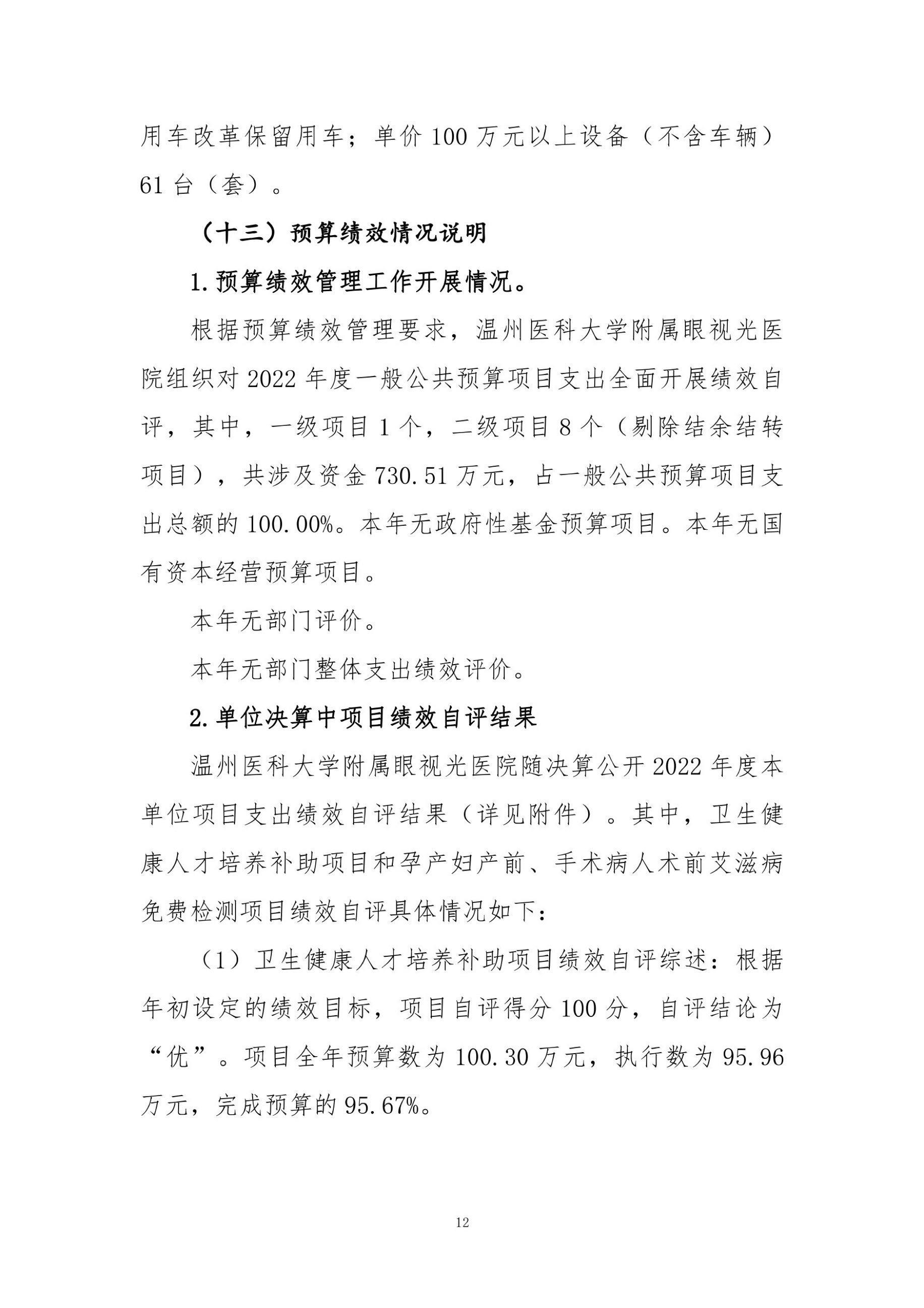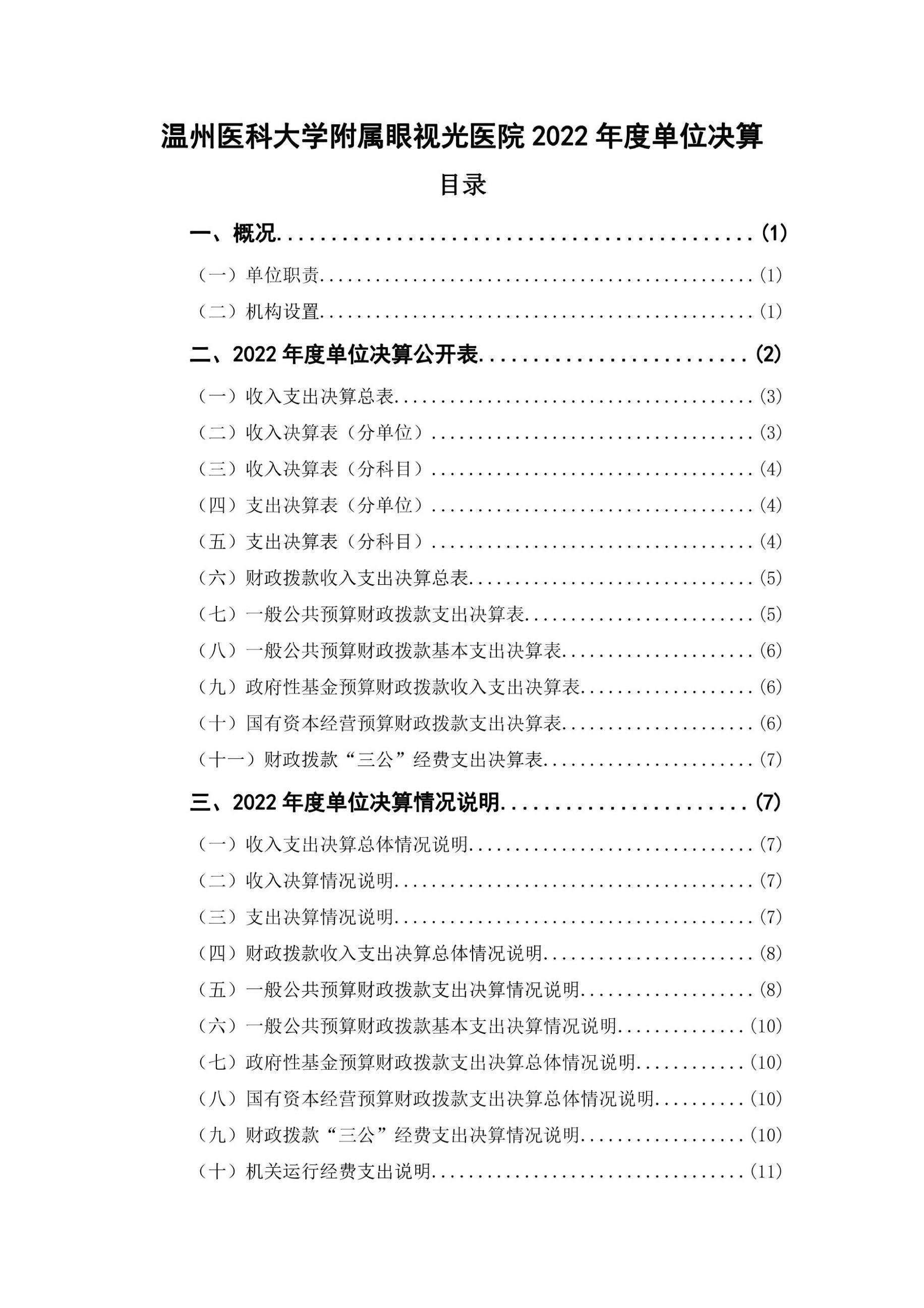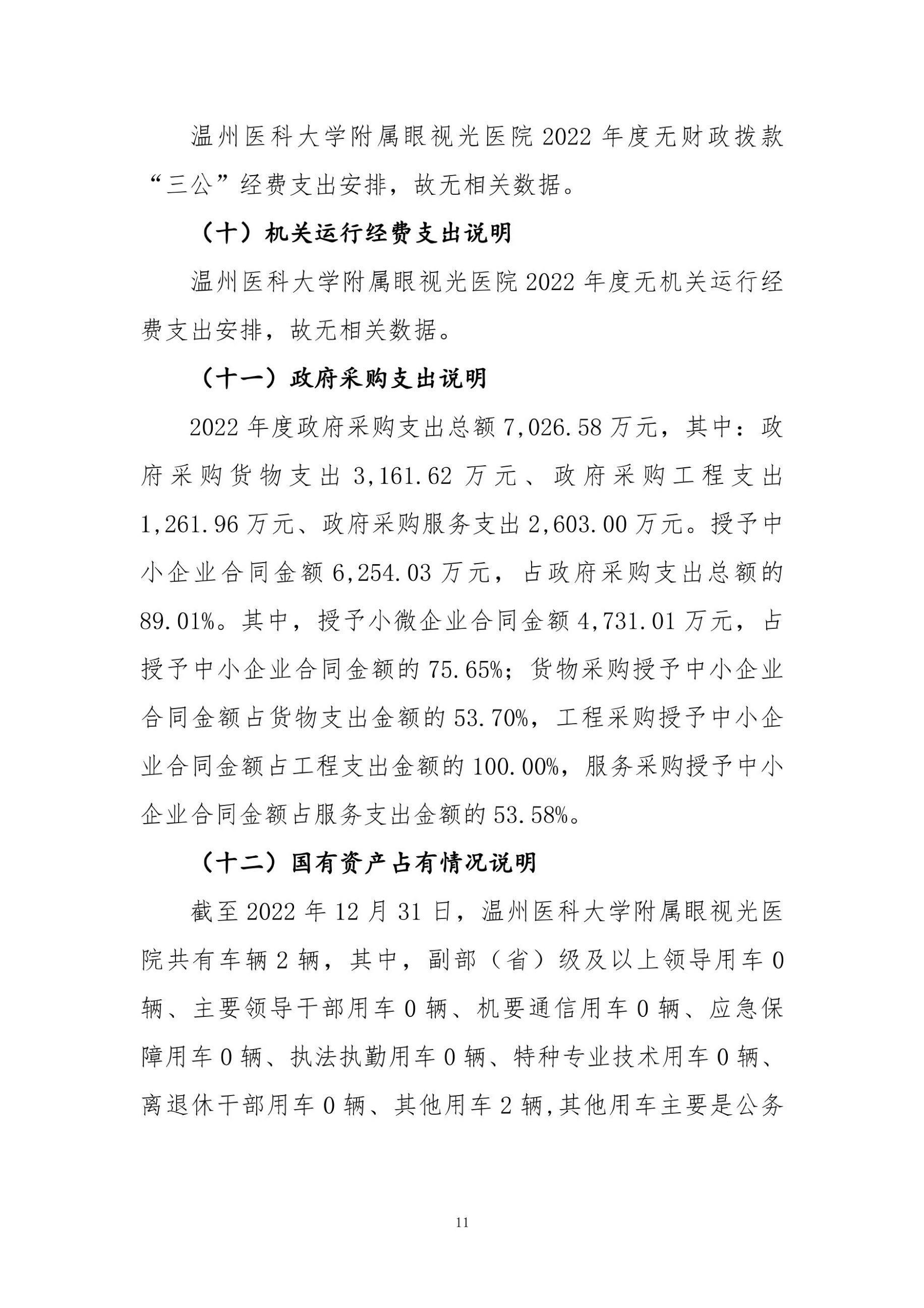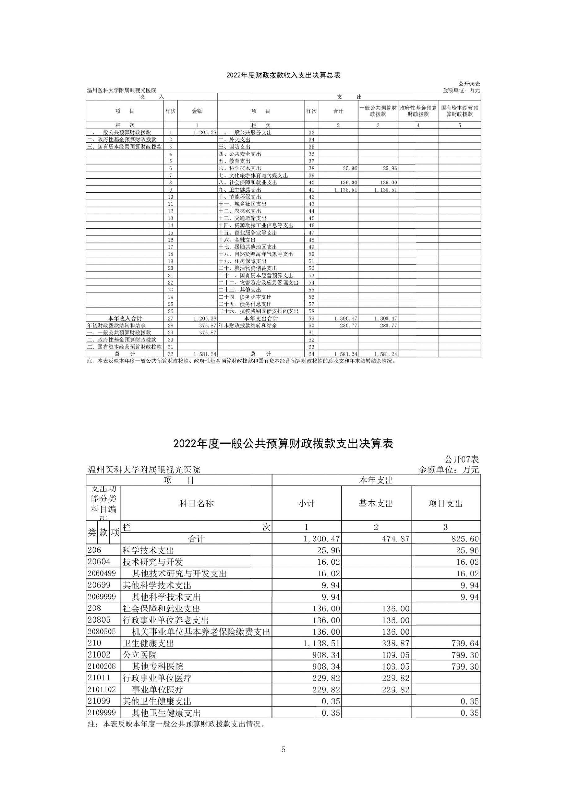 溫州醫(yī)科大學(xué)附屬眼視光醫(yī)院2022年度單位決算公開