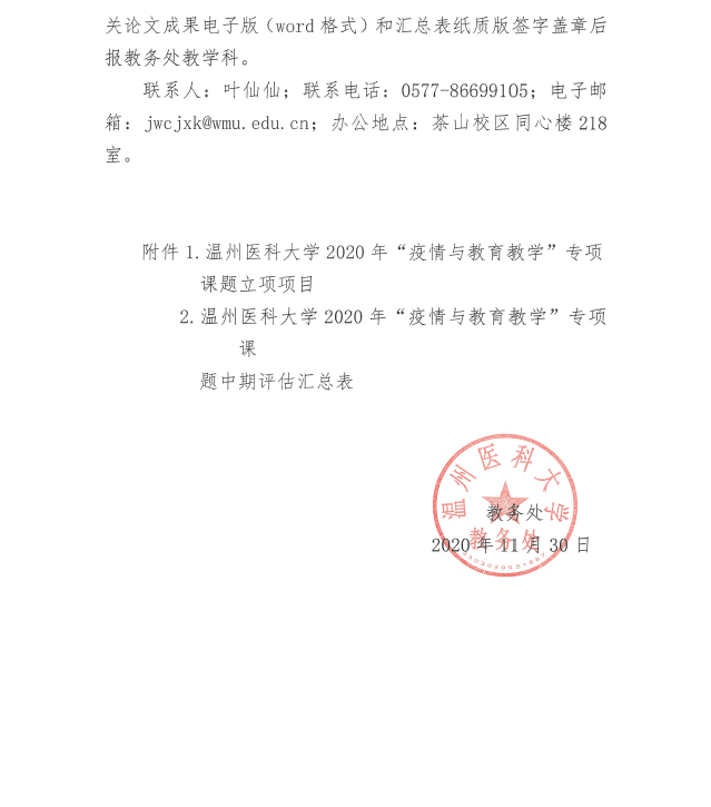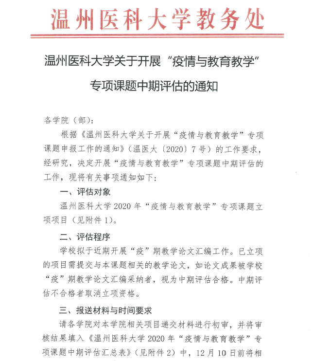 附件2:溫州醫(yī)科大學(xué)2020年“疫情與教育教學(xué)”專項(xiàng)課題中期評(píng)估匯總表.xls