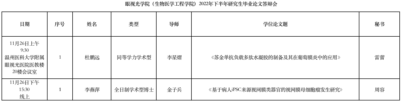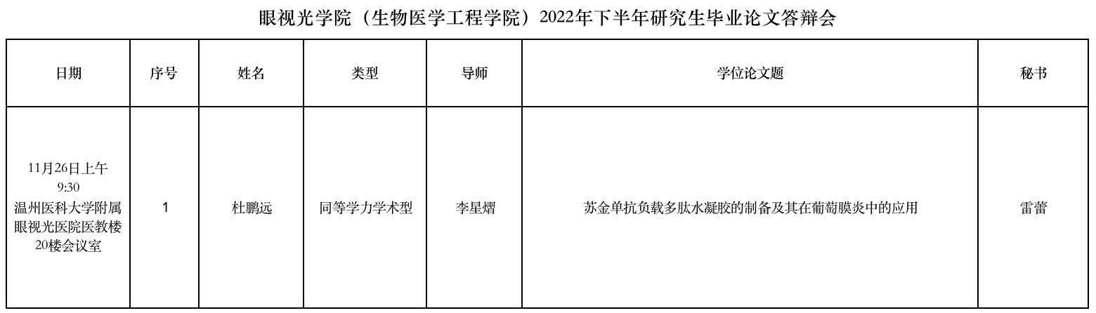 眼視光學(xué)院(生物醫(yī)學(xué)工程學(xué)院)2022年下半年研究生畢業(yè)論文答辯會(huì)公示(一)