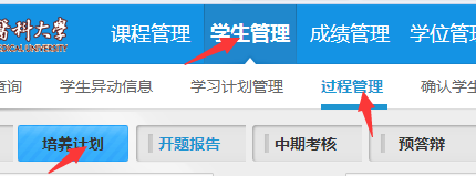 2.導(dǎo)師審核:完成的培養(yǎng)計(jì)劃需提交導(dǎo)師審核,經(jīng)導(dǎo)師同意后方可打印成書(shū)面版本上交學(xué)院。導(dǎo)師登錄系統(tǒng)后,進(jìn)入學(xué)生管理——過(guò)程管理——培養(yǎng)計(jì)劃,可查詢(xún)學(xué)生填寫(xiě)的培養(yǎng)方案并進(jìn)行審核,導(dǎo)師也可駁回學(xué)生的培養(yǎng)計(jì)劃,經(jīng)學(xué)生修改后再次提交審核。