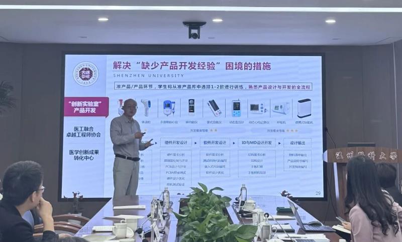 本次活動(dòng)特邀到教育部高等學(xué)校生物醫(yī)學(xué)工程類教學(xué)指導(dǎo)委員會(huì)前主任委員、東南大學(xué)生物科學(xué)與醫(yī)學(xué)工程學(xué)院博士生導(dǎo)師、萬(wàn)遂人教授,教育部高等學(xué)校生物醫(yī)學(xué)工程教學(xué)指導(dǎo)委員會(huì)委員、深圳大學(xué)生物醫(yī)學(xué)工程學(xué)院博士生導(dǎo)師、汪天富教授以及深圳大學(xué)醫(yī)學(xué)創(chuàng)新成果轉(zhuǎn)化中心與生物醫(yī)學(xué)工程教學(xué)實(shí)驗(yàn)中心副主任董磊擔(dān)任本次活動(dòng)主講嘉賓。校黨委委員、副校長(zhǎng)朱雪波,附屬第一醫(yī)院副院長(zhǎng)金獻(xiàn)測(cè),教務(wù)處副處長(zhǎng)林安琪,護(hù)理學(xué)院副院長(zhǎng)黃小瓊,教務(wù)處職能科室及眼視光學(xué)院教育教學(xué)部相關(guān)負(fù)責(zé)人、教師代表參會(huì)?;顒?dòng)由眼視光學(xué)院副院長(zhǎng)胡亮主持。