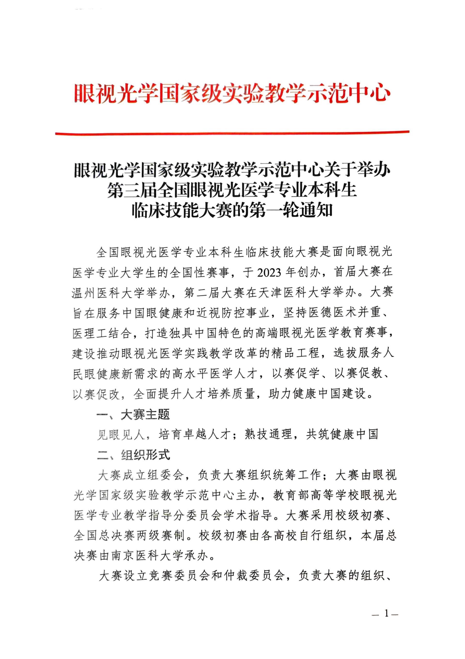 關(guān)于遴選第四屆全國眼視光醫(yī)學(xué)專業(yè)本科生臨床技能大賽承辦院校的通知
