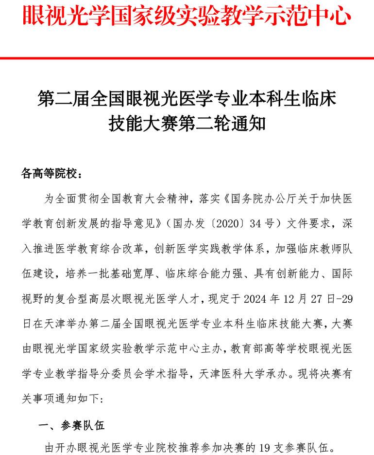 第二屆全國眼視光醫(yī)學專業(yè)本科生臨床技能大賽第二輪通知