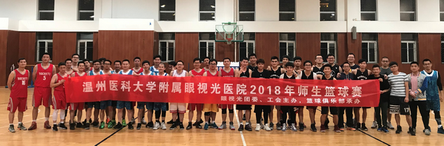 2018年4月20日,由團委、工會主辦,醫(yī)院籃球俱樂部承辦的第三屆師生籃球賽在溫州市第十二中學室內籃球館內拉開帷幕。本次賽事共有四支隊伍:科研視光隊、行政醫(yī)療隊、本??粕?lián)隊和研究生隊。四隊進行組內循環(huán)賽,分三日進行全場比賽,根據最終積分算出排名,積分相同根據勝負關系算出先后名次。