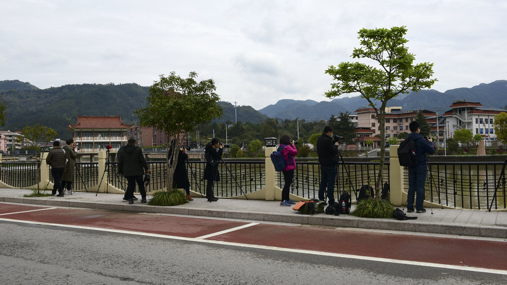 第二站,文成玉壺鎮(zhèn)。玉壺鎮(zhèn)是著名的僑鄉(xiāng),當(dāng)?shù)氐慕ㄖ彩穷H具異域風(fēng)格。站在臨街的河邊,支起三腳架,將相機(jī)調(diào)至最佳狀態(tài),輕輕一按,靜候大片出爐。