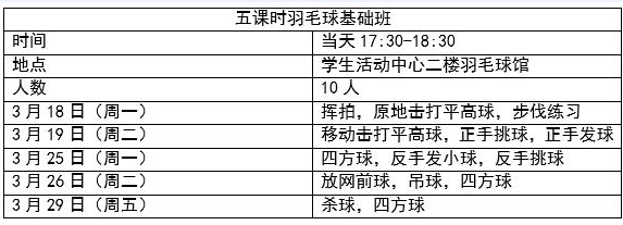 此次基礎(chǔ)教學(xué)班,共吸引了15位羽毛球愛好者積極參加,大家利用業(yè)余時(shí)間,共聚在學(xué)生活動(dòng)中心刻苦訓(xùn)練。培訓(xùn)課上,林教練詳細(xì)介紹了羽毛球打球技巧及站位,對(duì)羽毛球的握拍法、發(fā)球與接發(fā)球、高遠(yuǎn)球、步伐等幾個(gè)方面基礎(chǔ)動(dòng)作和雙打戰(zhàn)術(shù)進(jìn)行示范并逐一指導(dǎo)練習(xí)。學(xué)員們?nèi)褙炞?,將架拍,揮拍,發(fā)球,吊球,殺球和步伐等一系列基礎(chǔ)動(dòng)作逐一的收入囊中。