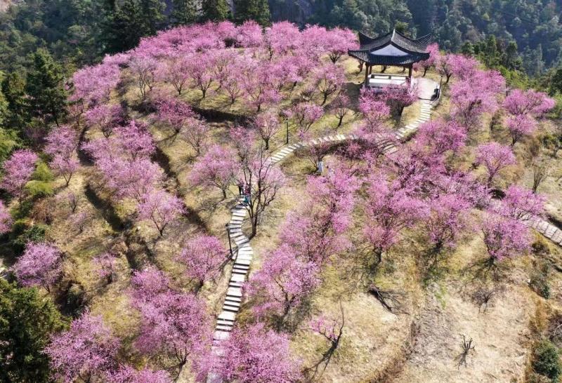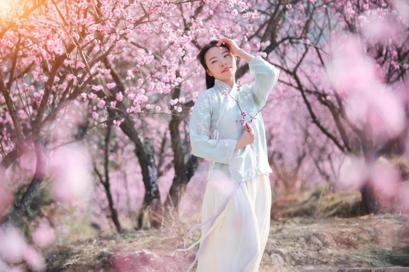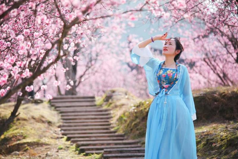 賞櫻正當(dāng)時,莫負(fù)好春光。說到溫州櫻花最佳的觀賞地,當(dāng)屬前幾年就火爆出圈的永嘉景點(diǎn)——溫州櫻花園。位于鶴盛鎮(zhèn)下家岙村過路灘的雁楠公路一側(cè),園區(qū)占地總面積達(dá)3600畝,共種植有臺灣牡丹櫻、染井吉野櫻、紅粉佳人櫻、各色芝櫻等品種18500余株,是浙江最大的人工培植花櫻花園。三月,櫻花正在漫山遍野綻放,一簇簇綴滿枝頭,爛漫如霞,與山景相互襯托,匯成一幅春色滿園的壯美畫卷。走進(jìn)園內(nèi),7000多株的紅粉佳人櫻(又名初美人)正在盛放,實(shí)在太讓人驚艷!微風(fēng)輕拂,透過花瓣看向天空,陽光下的緋紅,既溫潤又有一種說不出的柔軟,勾勒出春天最浪漫的顏色。身著漢服行走在在櫻花園里,用鏡頭記錄下浪漫時刻。無論何種裝扮,都是春日最時尚的大片。盛世賞櫻,“櫻”你而來。滿眼都是櫻花,滿眼都是賞花的人?;S清風(fēng)舞,人醉花舞中。不負(fù)春光,在櫻花園的美好中做個花中的幽夢,是一分純真。