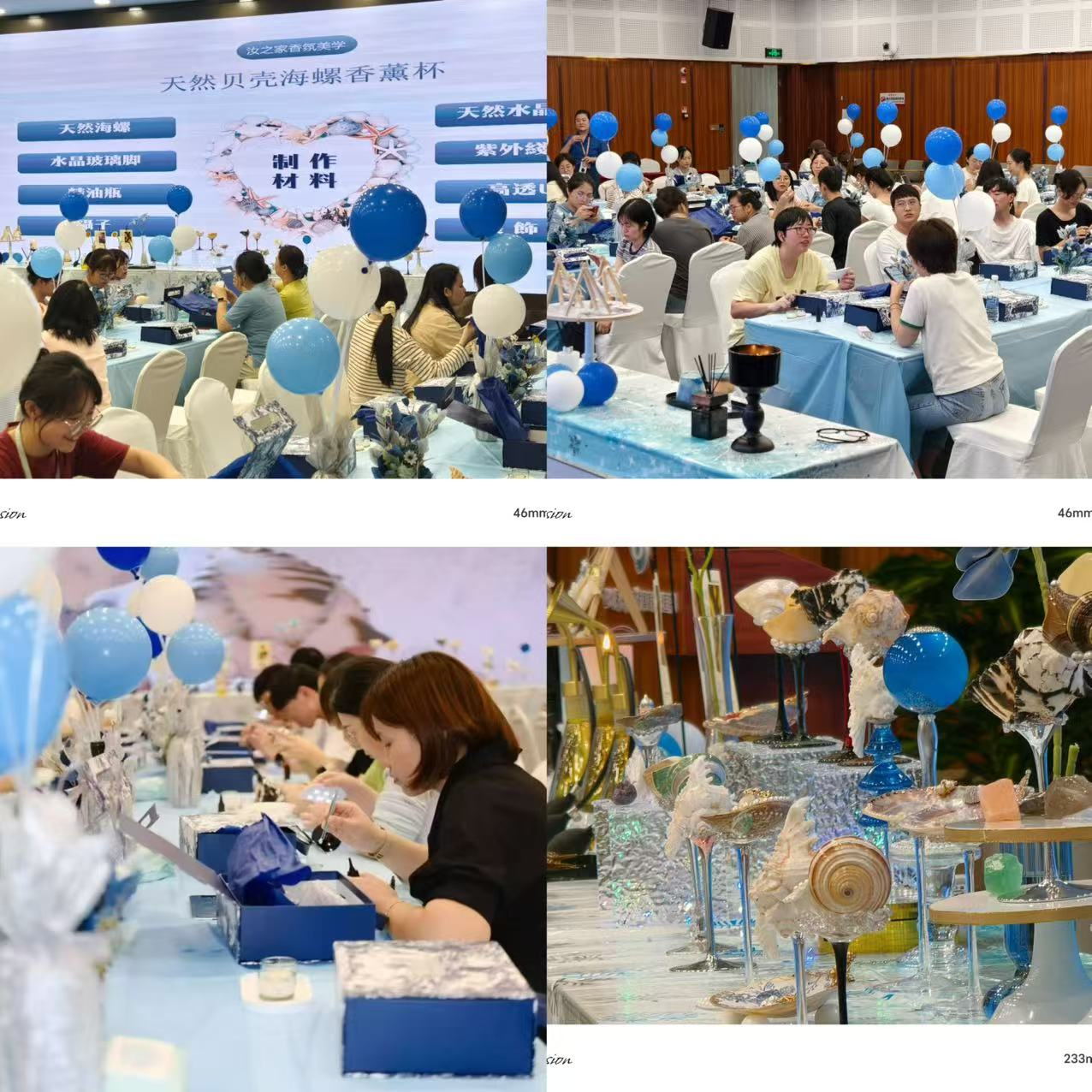 在大家的精心雕琢下,海螺與水晶杯完美融合,大海的清新與手作的溫暖沁入每一縷香絲。杯盞之間,寄予著獨(dú)特的心意,寧謐而美好,陪伴大家輕松片刻,釋放壓力。