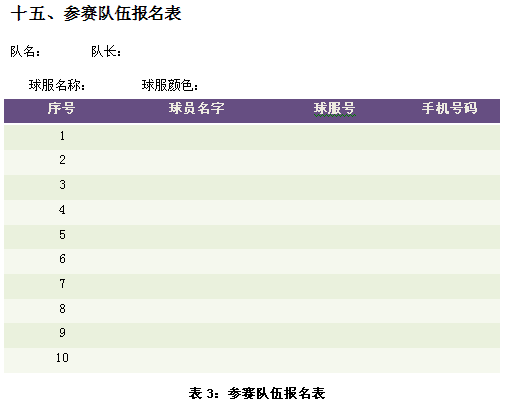 1、每隊最多填報10名運動員參賽,并從運動員中確定 1名隊長。