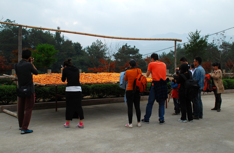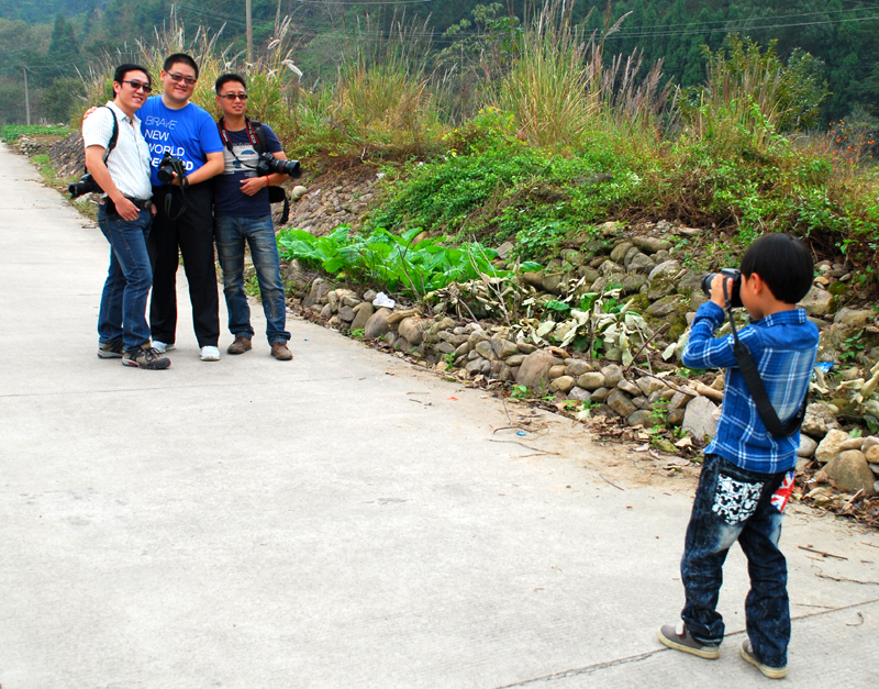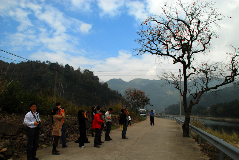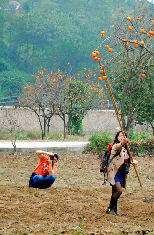 今年的攝影活動(dòng)主題是楠溪江畔的東皋紅柿。東皋一帶盛產(chǎn)柿子,時(shí)下正值秋收,那一個(gè)個(gè)的紅柿更是像紅燈籠般高掛在枝頭,美不勝收。今年的隊(duì)伍里,我們驚喜地發(fā)現(xiàn)了三個(gè)小朋友,他們都是跟著爸爸來的,那陣勢(shì)似乎是要上演《爸爸我們?nèi)ツ膬骸返囊馑寄?!小朋友雖小,但拍起照片來一點(diǎn)也不含糊,拍照時(shí)的認(rèn)真和執(zhí)著堪比真正的攝影師。攝影的魅力就在于它不僅能拍攝、定格目光之所及,還可以發(fā)揮想象力天馬行空進(jìn)行各種創(chuàng)作。想必各位老爸也是想讓小朋友們體驗(yàn)一番吧。日暮西山之際,我們的隊(duì)伍圓滿結(jié)束了一天的拍攝行程,大家各有所獲。