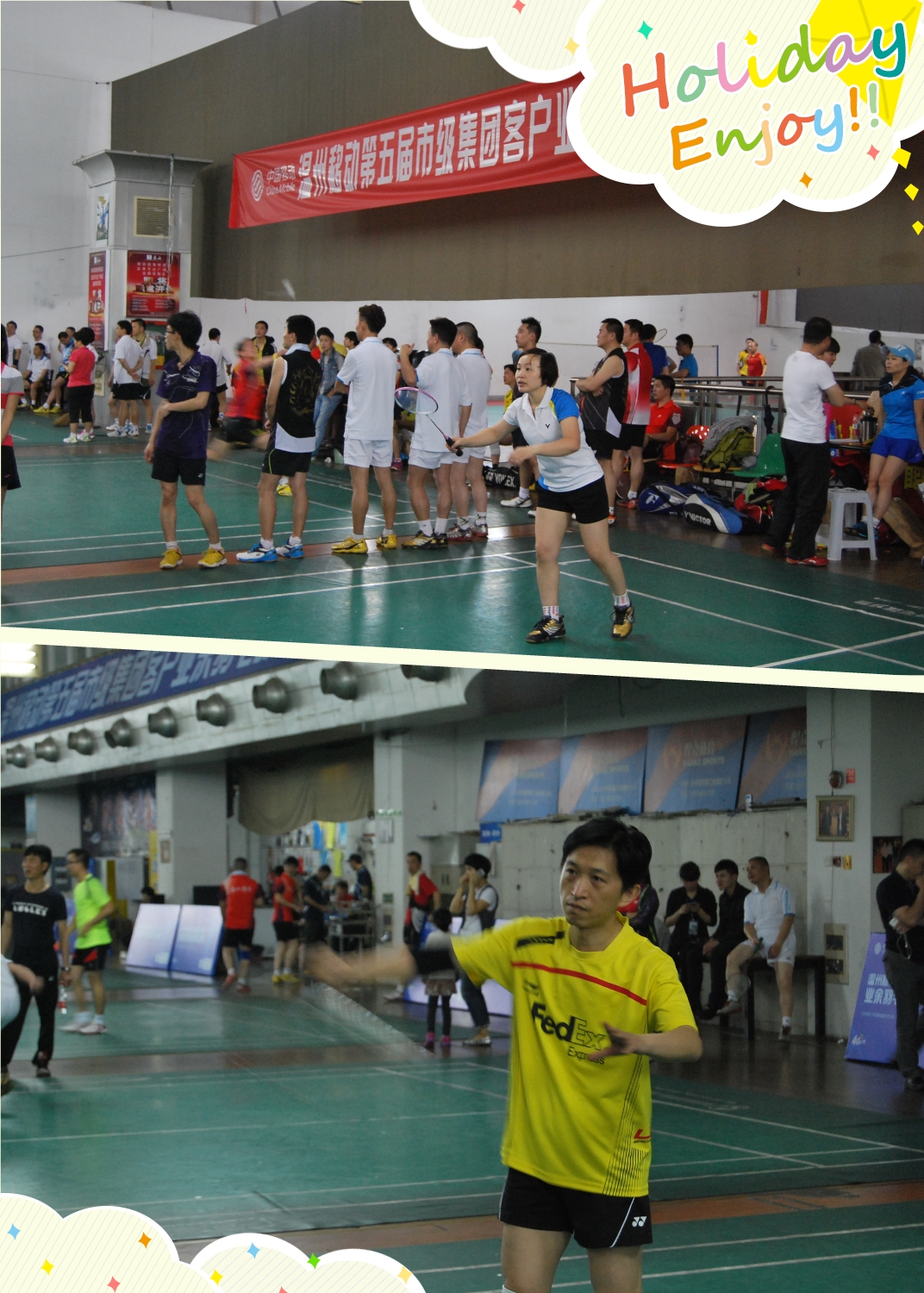 5月24日,由中國移動溫州分公司主辦的溫州移動第五屆市級集團客戶業(yè)余羽毛球團體邀請賽在會展中心開賽。來自全市級機關(guān)、企事業(yè)單位的36支代表隊共288名運動員參加比賽。本次比賽共分男單、女單、男雙1(1人為單位副職及以上或兩人均為中層以上人員人員)、混雙、男雙2五個項目,一局決勝負,每局21分,每球得分制,打到20分平后領(lǐng)先1分則為勝方。我院代表隊伍的8名運動員充分發(fā)揚了頑強拼搏、堅持到底的體育精神,面對與強手過招,不畏懼,不放棄,與對手斗智斗勇、敢拼敢打、每球必爭,雖在本次比賽中未能出線斬獲名次,但是一次極具身體與心理鍛煉體驗的外戰(zhàn),有助于我院在日后的羽毛球比賽中走的更遠更長。