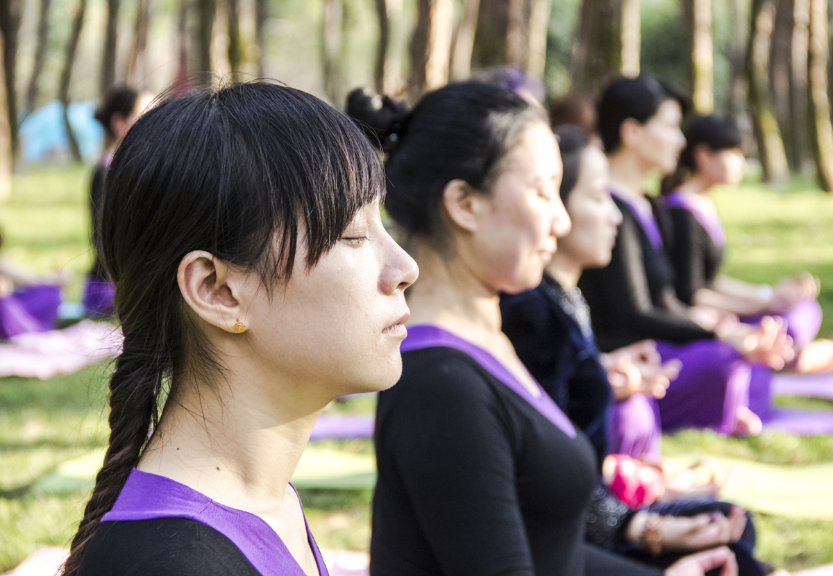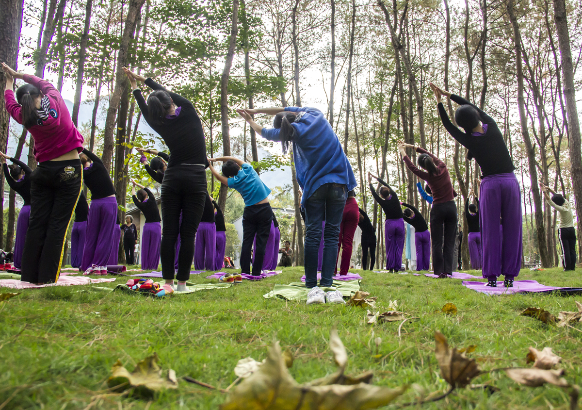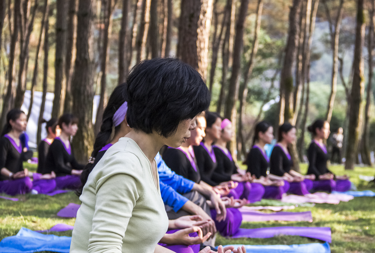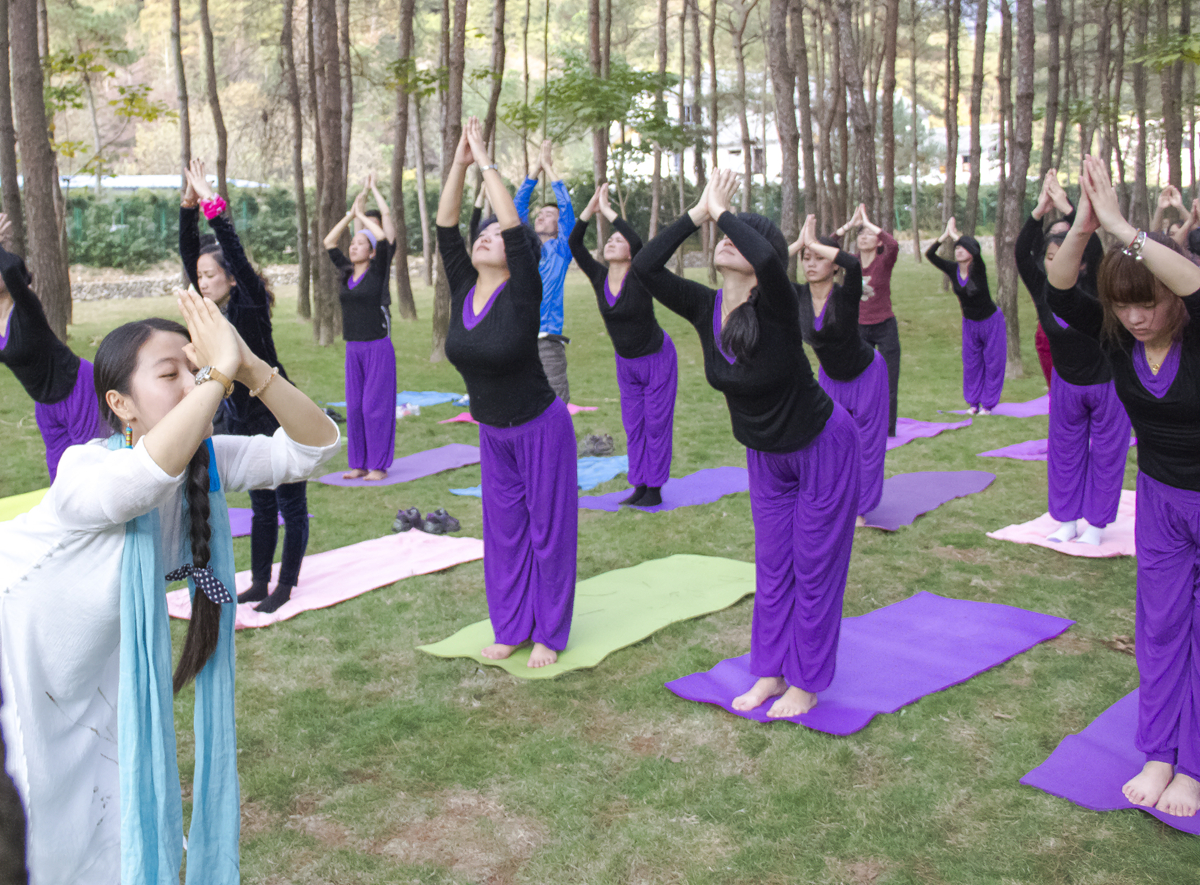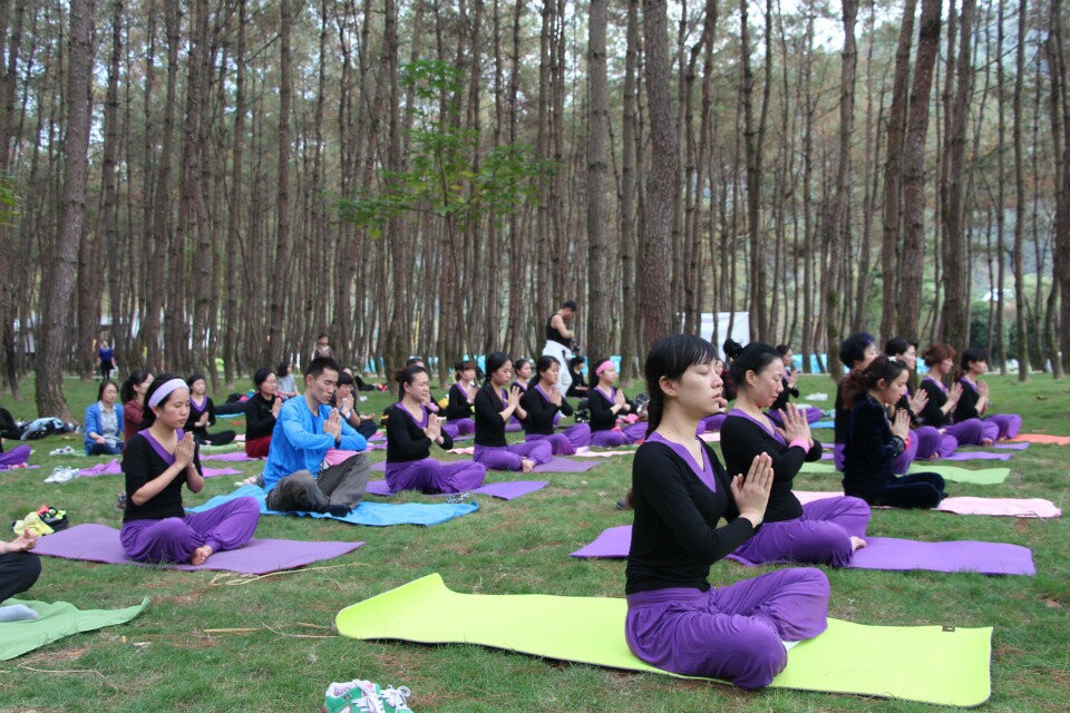 眼視光醫(yī)院之森林拜日瑜伽,吸收日月之精華,凈化心靈,釋放壓力,增加能量。