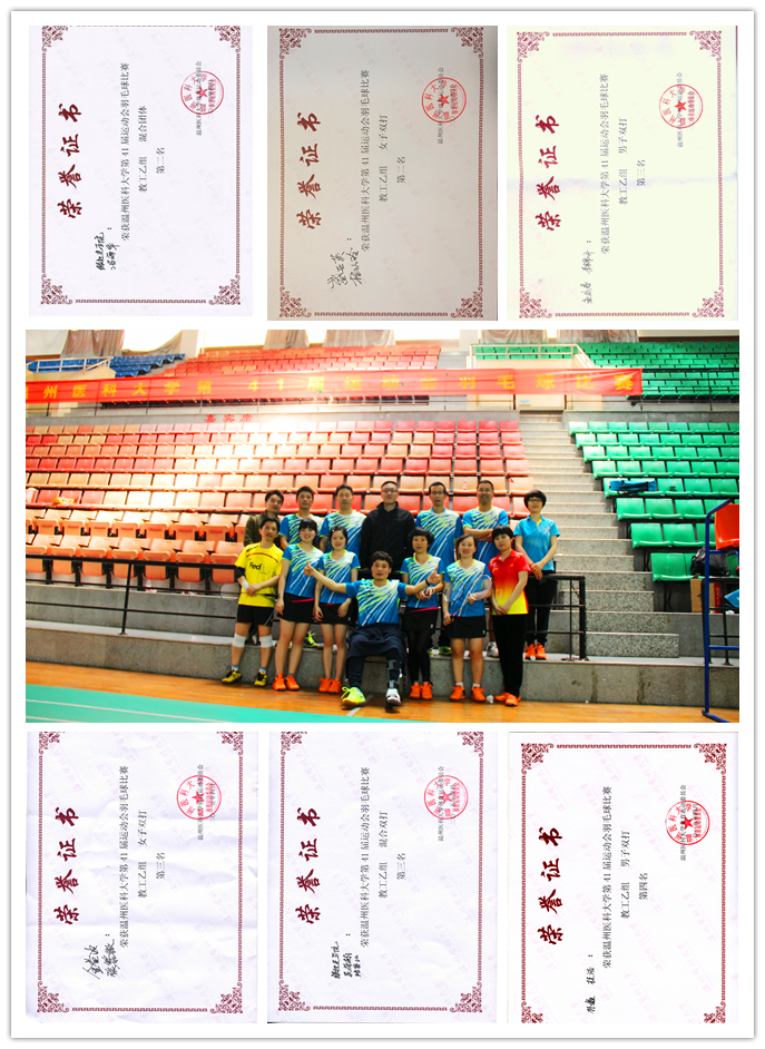 第41屆運(yùn)動(dòng)會(huì)(教工乙組)羽毛球比賽于2015年4月12日落下帷幕,我院代表隊(duì)經(jīng)過兩天一夜的苦戰(zhàn),賽出風(fēng)格,賽出水平,最終取得混合團(tuán)體賽第二名,并在單項(xiàng)項(xiàng)目上獲得1項(xiàng)第二、3項(xiàng)第三和1項(xiàng)第四,最后以總積分51分拔得頭籌,打響了今年運(yùn)動(dòng)會(huì)的第一炮,也創(chuàng)造了我院羽毛球史上的新高!