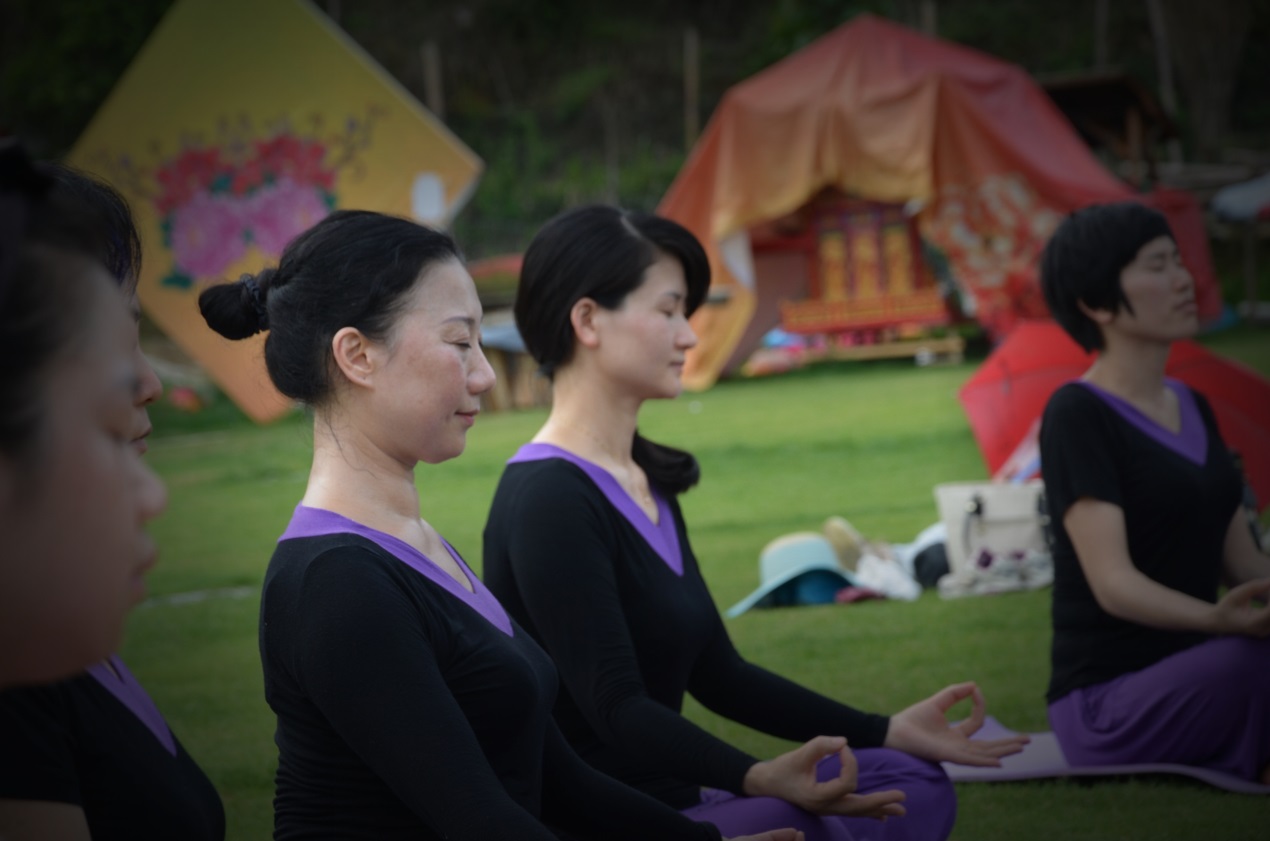 下午, 我們來到民族花海,“空山新雨后”是那么的舒服、自然。鋪一席軟墊,伴一曲輕音樂,眼視光瑜伽課程在齊聲的唱頌中開始,子璐老師引領(lǐng)大家完全呼吸帶動脊柱波浪式流動進(jìn)入TRIYOGA……瑜伽人在天地靜默間冥想,盡享一場心靈盛宴,細(xì)細(xì)體味著人與自然的融合帶來的安寧與力量。每個人的臉上是那般愉悅,內(nèi)心是那般柔軟。靈動的身軀在呼吸吐納中,將自身完整而徹底地徜徉在花海之中。