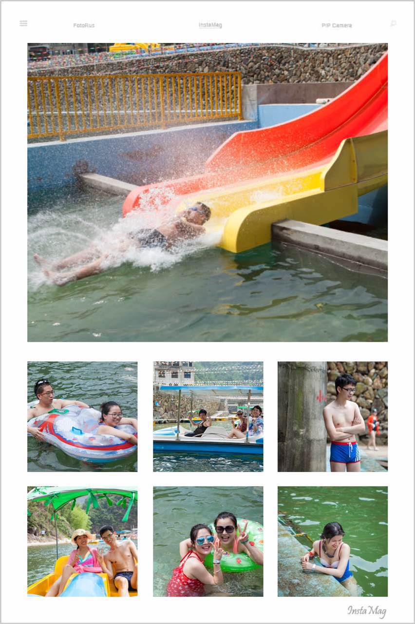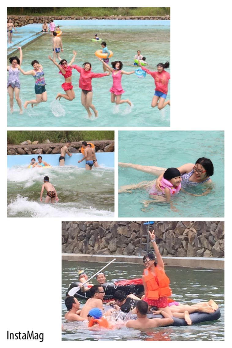 時(shí)間就在這精彩的比賽中流逝,下午是自由活動(dòng)。整個(gè)水上樂園根據(jù)溪水的深淺,依次建有“風(fēng)暴造浪池”、水上自行車和劃船區(qū)、成人泳池以及兒童泳池和彩虹滑梯游樂區(qū),同時(shí)開辟了激流勇進(jìn)和兒童水屋的區(qū)域,供不同層次的游客選擇游玩。最受我們青睞的當(dāng)屬5000平方米的“風(fēng)暴造浪池”,每20分鐘會(huì)制造一次洶涌波濤,每次長(zhǎng)達(dá)半個(gè)小時(shí),我們?cè)诒鶝龅南幸材芨惺艿?/FONT>“風(fēng)暴”的刺激,浪花一個(gè)接著一個(gè)拍打過來,讓我想起一句話——長(zhǎng)江后浪推前浪,一浪賽過一浪。勇敢點(diǎn)的人,他們就會(huì)站在最刺激的地方,讓浪拍打過來,而有點(diǎn)膽小的就往里靠,浪打過來她們就像坐微型過山車一樣。還有激流勇進(jìn),我膽子比較小,走到平臺(tái)上,最終還是不敢坐上去,男的比較大膽,玩了一次又一次,很刺激。三五成群坐在船里,聊聊天,慢慢劃,玩玩水其實(shí)也是一種享受。