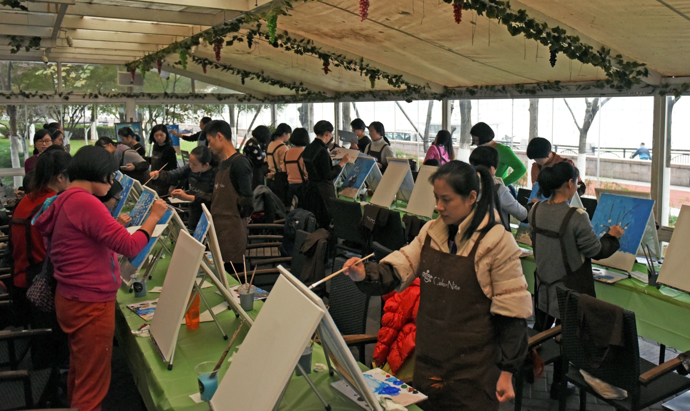 在國外,有種即興、自由、藝術(shù)的休閑方式叫“Art Jamming”,就是繪畫愛好者隨性臨摹一幅名畫,或是自由地創(chuàng)作一幅手繪。我們把這種國外的方式搬到甌江路的玻璃房里,讓大家足不出戶也能體驗(yàn)高大上的文藝氛圍。參加本次活動的幾乎都是零油畫基礎(chǔ)的職工,在老師手把手的耐心教導(dǎo)下,大家都出色的完成了自己的作品。并且大家還能“打包”帶走自己的作品,裱框掛在家里一定別有一番韻味。
