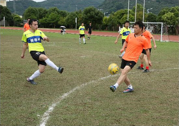 穿上了統(tǒng)一的球衣,就是一個(gè)戰(zhàn)壕里的兄弟。胸口印著的“眼視光”三個(gè)大字像一面面旗幟在揮舞,帶領(lǐng)我們不斷去攻城拔寨。每一次盤帶,每一腳傳遞,每一粒進(jìn)球都將凝固成美好的瞬間。一次次跌倒,一次次爬起,踢足球的男人,懂得堅(jiān)強(qiáng),因?yàn)槲覀冊谇驁錾辖?jīng)歷過無數(shù)的傷痛,卻從未停止腳步。每一個(gè)眼神,每一次擊掌,每一個(gè)手勢,踢足球的男人,懂得珍惜,因?yàn)槟鞘顷?duì)友對你的默默的支持和信任。這一次,我們不抱怨而選擇大聲的鼓勵(lì);這一次,我們不退縮而選擇更多的承擔(dān);這一次,我們不個(gè)人而選擇團(tuán)隊(duì)的力量。因?yàn)檫@一次,我們要用足球給眼視光貼上不一樣的標(biāo)簽。
