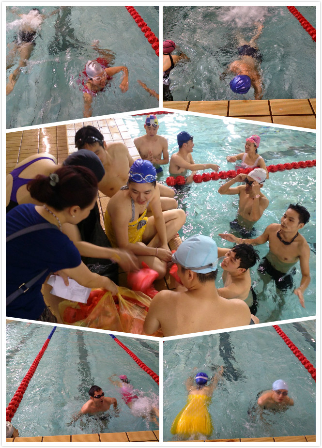 隨著比賽口令的發(fā)布,伴著一聲跳水聲,在平靜的泳池水面上迸出了水花,游泳健將們用強(qiáng)壯的身體在水中上下翻騰,看到滑落指尖的水滴,不停揮動(dòng)的雙臂,不知疲倦的雙腿,在水面留下一道道美麗的波紋。在經(jīng)過激烈的角逐后,第三組以一馬當(dāng)先的優(yōu)勢(shì)取得第一名,第一組也以微弱的優(yōu)勢(shì)取得了第二的成績,第三組雖是最后一名,但是也盡力拼搏到最后一刻。之后,便是大家的趣味休閑活動(dòng),增進(jìn)彼此之間的交流。