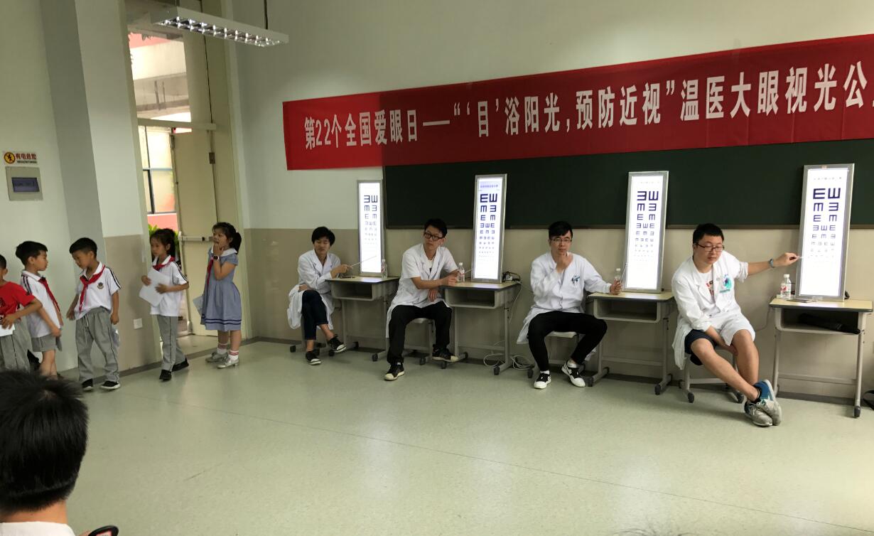 “六一”兒童節(jié)前夕,我院門診部、防盲治盲辦公室、工會(huì)聯(lián)合,安排13位醫(yī)護(hù)志愿者來到溫州大學(xué)城附屬學(xué)校,開展以“‘目’浴陽光,預(yù)防近視”為主題的視覺健康義診活動(dòng),給孩子們的兒童節(jié)送上一份特殊的節(jié)日禮物。