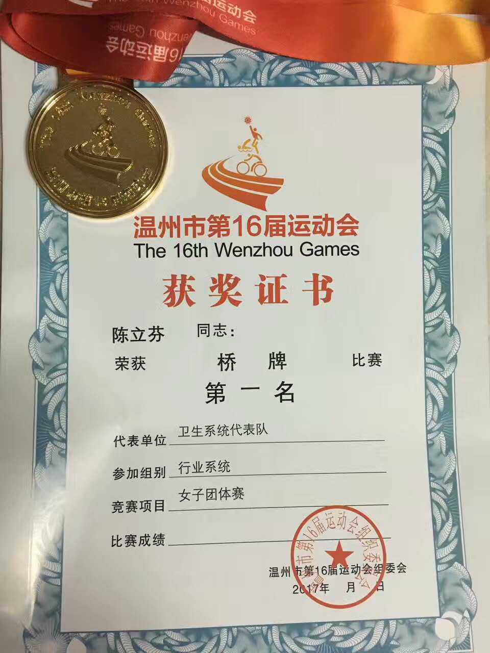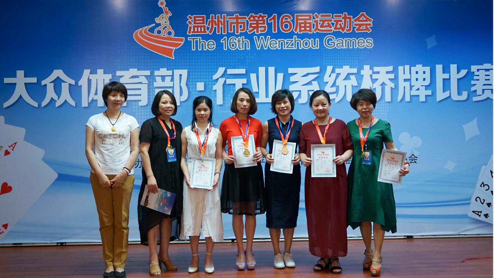 6月2日,由溫州市人民政府主辦,溫州市體育局、平陽縣人民政府承辦,平陽縣體育局、溫州市橋牌協(xié)會(huì)協(xié)辦的溫州市第十六屆運(yùn)動(dòng)會(huì)大眾體育部橋牌比賽,在平陽國(guó)際大酒店鳴鑼開賽。來自溫州市(縣)大眾體育部、各行業(yè)系統(tǒng)共16支代表隊(duì)180名運(yùn)動(dòng)員參加了本次比賽。溫州市衛(wèi)計(jì)委選派我院陳立芬同志為運(yùn)動(dòng)員,代表溫州市衛(wèi)生計(jì)生系統(tǒng)參加比賽。