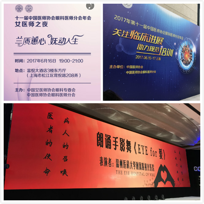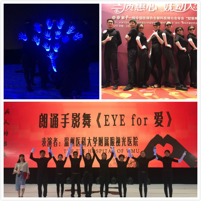 6月16日,十一屆中國醫(yī)師協(xié)會眼科醫(yī)師分會年會在上海盛大召開,一年一度的“女醫(yī)師之夜”再度拉開帷幕,彰顯女醫(yī)師們的個(gè)人魅力,進(jìn)一步擴(kuò)大了專委會的影響。今年的主題是——蘭質(zhì)蕙心·嫵動人生,我們的節(jié)目詩朗誦 手影舞《Eye For 愛》有幸受邀登臺表演,我們用手影表達(dá)敢為天下先的眼視光人,表達(dá)追求卓越的眼視光精神。飽含情感的詩歌、聲情并茂的朗誦、意義非凡的手影表演,贏得在場觀眾一陣陣掌聲和一聲聲驚嘆。