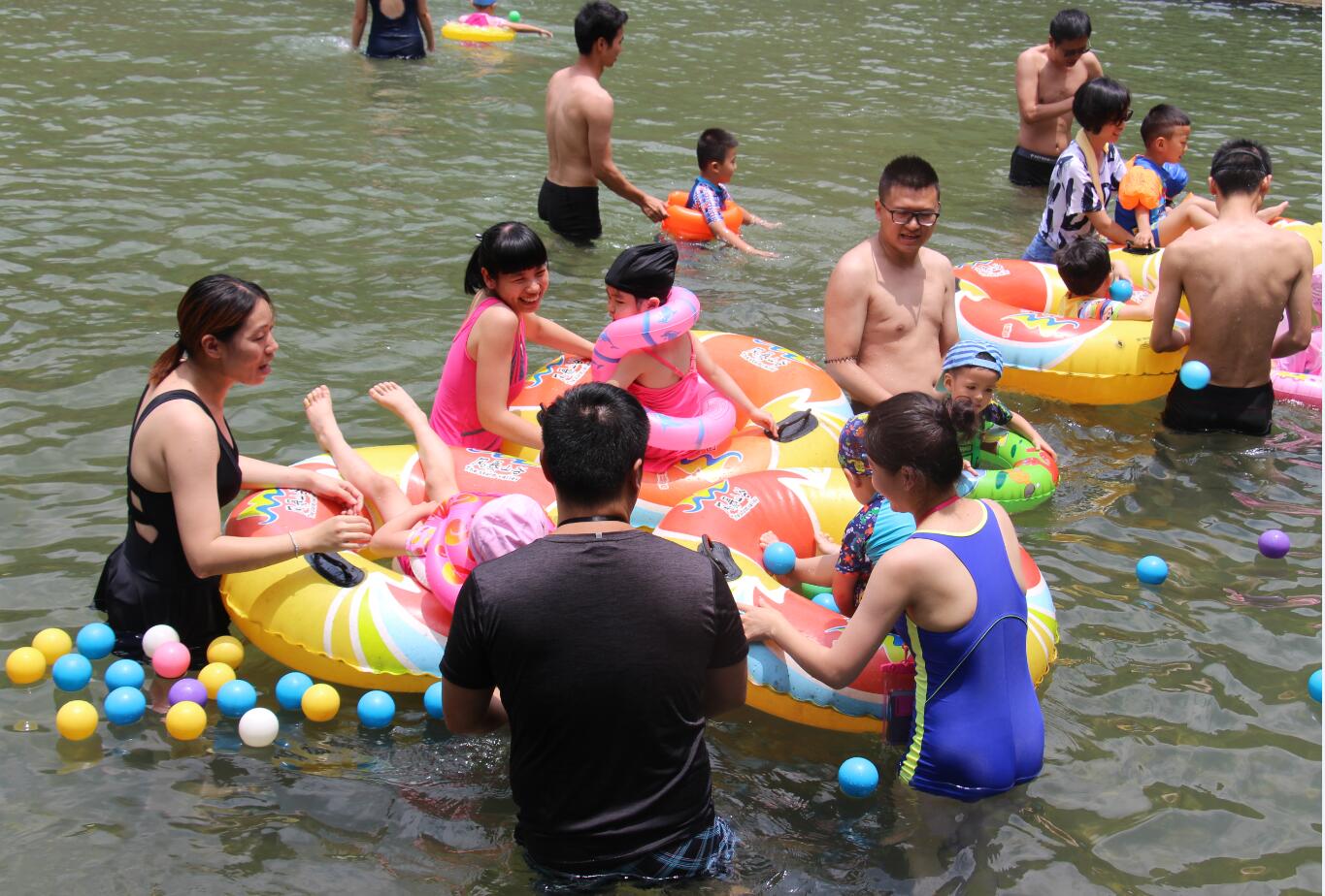 ?? 八點整,兩輛車承載著71位大小朋友準(zhǔn)時從單位出發(fā),前往目的地“風(fēng)暴山谷”。一路上,天朗氣清,歡聲笑語,在不知不覺中就到了目的地。大家跟隨教練來到我們今天的主戰(zhàn)場,五分鐘熱身完以后,由大家自行分成了三個小分隊,進行親子之間的友誼賽。“劃艇載人”,“俯臥接力”,“小小泳將”,“水中撈寶”,四個項目精彩紛呈,小朋友們各顯神通,家長們努力配合,場邊加油聲更是此起彼伏。比賽結(jié)果由我們第二小分隊實力最強,勇奪冠軍。