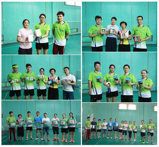 有男雙、女雙、混雙3個(gè)項(xiàng)目的團(tuán)體混合賽,比賽采用25分制,四隊(duì)進(jìn)行循環(huán)賽一爭高下。賽場上揮汗如雨,賽場下是助威遞水的同伴,一句句加油,一聲聲鼓勵(lì),將整個(gè)團(tuán)體凝聚在一起,拼出了“羽”者的榮耀,這種生動(dòng)和諧的場面將會是第三期最深刻的記憶!經(jīng)過近3小時(shí)的比拼,最終C隊(duì)、B隊(duì)、A隊(duì)分獲冠亞季軍,D隊(duì)獲得第四名,工會副主席周婕和俱樂部負(fù)責(zé)人馮海華給各參賽隊(duì)的“羽”士們分發(fā)獎(jiǎng)品。