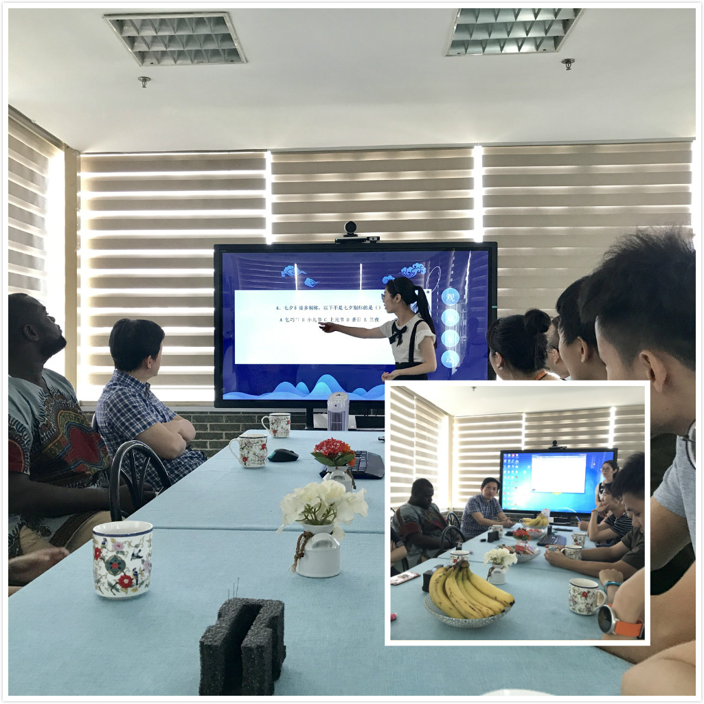 活動(dòng)伊始,與外國(guó)友人一起分享情人節(jié)的中外文化差異。以七夕凄美的神話故事為引,緊接有獎(jiǎng)小問答回溯節(jié)日的起源,最后共同參與七夕傳統(tǒng)活動(dòng)——穿針乞巧,第一次將活動(dòng)推動(dòng)到一個(gè)互動(dòng)的小高潮。在國(guó)際化的今天,西方節(jié)日往往受到年輕人的追捧而傳統(tǒng)節(jié)日往往受冷遇。當(dāng)然這可能與商業(yè)的推廣不無關(guān)系,而并非是因?yàn)閭鹘y(tǒng)節(jié)日無氛圍而被青年人淡忘。實(shí)際上傳承了幾千年的傳統(tǒng)文化,賦予了中國(guó)傳統(tǒng)節(jié)日以形式多樣,內(nèi)容豐富的表現(xiàn)形式。除了外來泊來的情人節(jié),我們也有屬于自己的情人節(jié),雖然最開始這個(gè)節(jié)日與愛情并無關(guān)系。然而多情的中國(guó)人,賦予牛郎織女相聚的這一天以新的意義,成為象征愛情的節(jié)日。