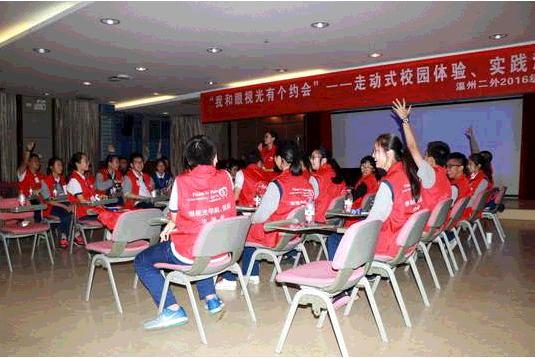 “校園體驗(yàn)實(shí)踐活動(dòng)”于2016年啟動(dòng),第一期迎來(lái)的是溫州市實(shí)驗(yàn)中學(xué)的學(xué)生,今天上半年溫州繡山中心初三段的孩子也參加了體驗(yàn)活動(dòng)。接下來(lái),我院還會(huì)定期開展校園體驗(yàn)活動(dòng),讓校園社會(huì)實(shí)踐與“眼”結(jié)緣,使得實(shí)踐活動(dòng)更具特色,讓醫(yī)院文化融入校園。