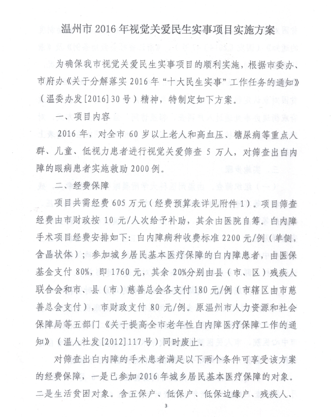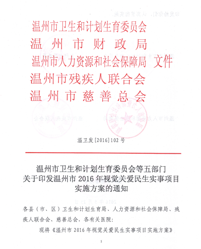 溫州市衛(wèi)生和計(jì)劃生育委員會(huì)等五部門關(guān)于印發(fā)溫州市2016年視覺關(guān)愛民生實(shí)事項(xiàng)目實(shí)事方案的通知