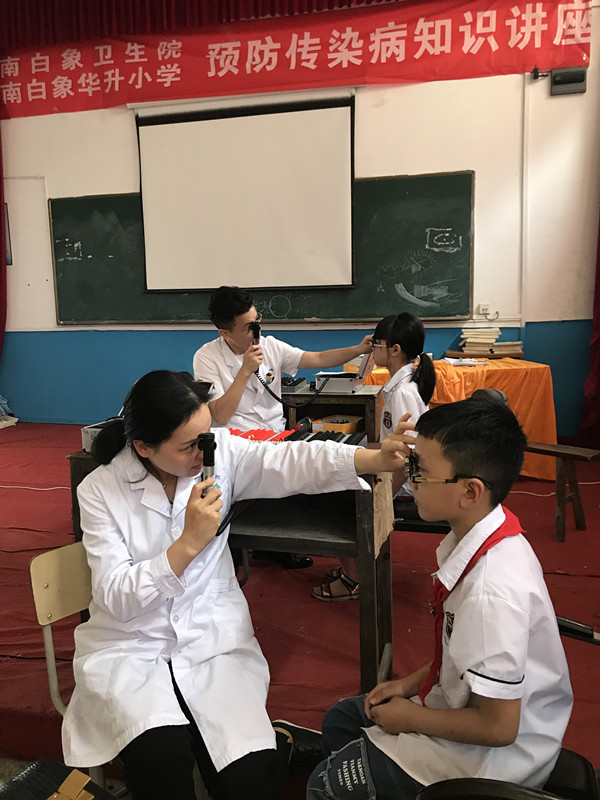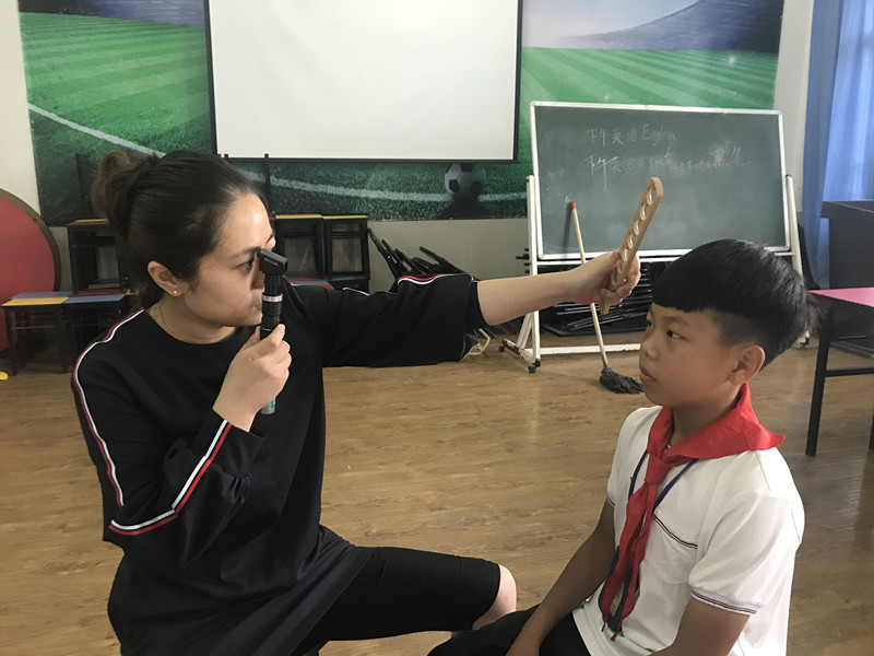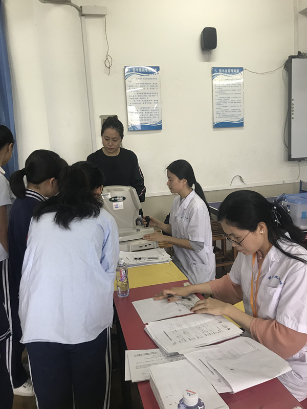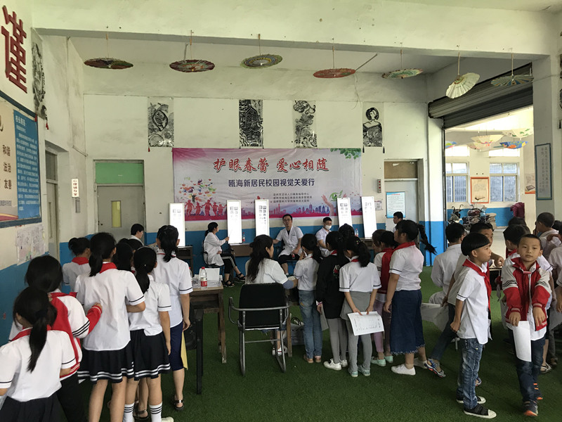 5月24日,溫州醫(yī)科大學(xué)附屬眼視光醫(yī)院防盲治盲辦公室“校園視覺(jué)關(guān)愛(ài)項(xiàng)目”聯(lián)合第十五黨支部醫(yī)護(hù)人員及甌海新居民局走進(jìn)甌海南白象華升學(xué)校,為全校900多名學(xué)生送去護(hù)眼大餐。檢查項(xiàng)目包括裸眼視力檢查、戴鏡視力檢查、電腦驗(yàn)光、檢影驗(yàn)光、眼位等。目前全校人數(shù)為933人,生源為當(dāng)?shù)赝鈦?lái)務(wù)工人員子女。
